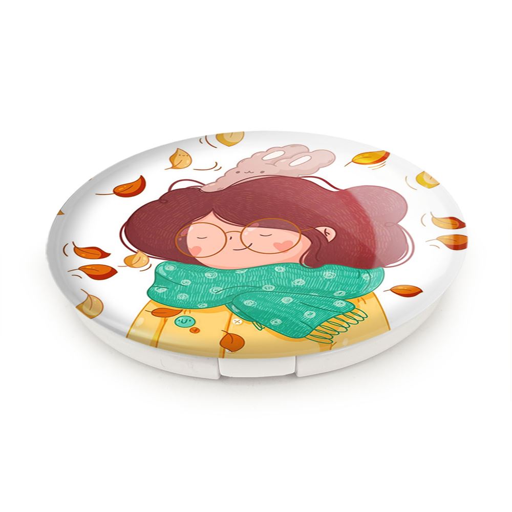 آینه های تاشو دخترونه خندالو، از جنس پلاستیک فشرده ABS تولید شده و به رنگ سفید می باشد. یکی از آینه ها ابعاد واقعی را نشان داده و دیگری با قابلیت بزرگنمایی، جزئیات را بهتر نمایش می دهد.