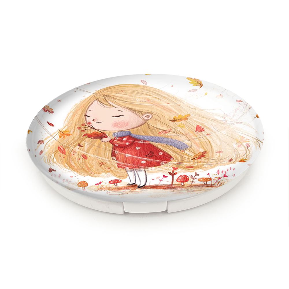 آینه های تاشو دخترونه خندالو، از جنس پلاستیک فشرده ABS تولید شده و به رنگ سفید می باشد. یکی از آینه ها ابعاد واقعی را نشان داده و دیگری با قابلیت بزرگنمایی، جزئیات را بهتر نمایش می دهد. ابعاد هر یک از آینه ها، دایره ای به قطر 7.5 سانت می باشد که نه خیلی بزرگ و غیر قابل استفاده در کیف آرایشی ست و نه خیلی کوچک که تصویر خاصی در آن مشاهده نشود. آینه تاشو دخترونه سایزی استاندارد و کارآمد دارد و در هر کیفی جا میگیرد. چاپ طرح بوسیله چاپگرهای دیجیتال شش رنگ با شفافیت و کیفیتی مثال زدنی بر روی یک وجه از بدنه ی آینه انجام گرفته و با روکش لمینت حرارتی پوشیده شده که در مقابل آسیب و خط و خش مقاوم بوده و کیفیت بالایی دارد. درب آینه بوسیله قفل بدنه ی آن، باز نمی ماند و کاملا بسته می شود و مناسب قرار گیری در کیف لوازم آرایش و کیف های کوچک دستی نیز هست. آینه های تاشو دخترونه خندالو با تنوع طرحی بسیار بالا، سلیقه هر نوع مخاطبی را تامین میکند.