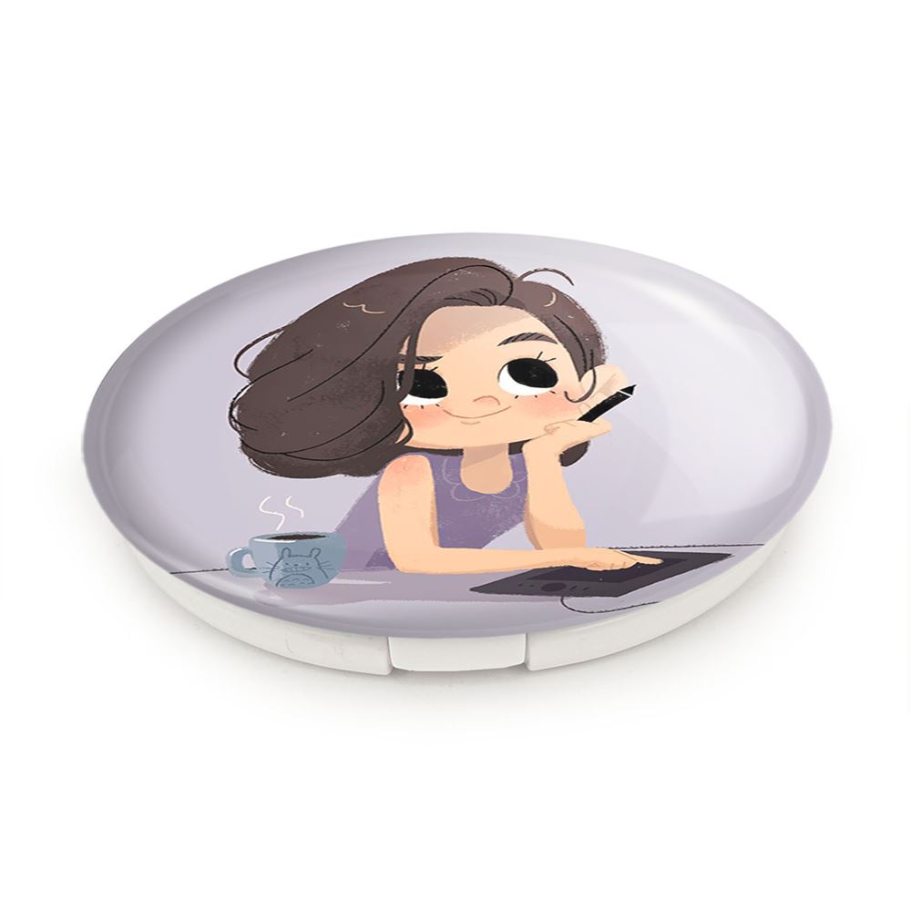 آینه های تاشو دخترونه خندالو، از جنس پلاستیک فشرده ABS تولید شده و به رنگ سفید می باشد. یکی از آینه ها ابعاد واقعی را نشان داده و دیگری با قابلیت بزرگنمایی، جزئیات را بهتر نمایش می دهد.