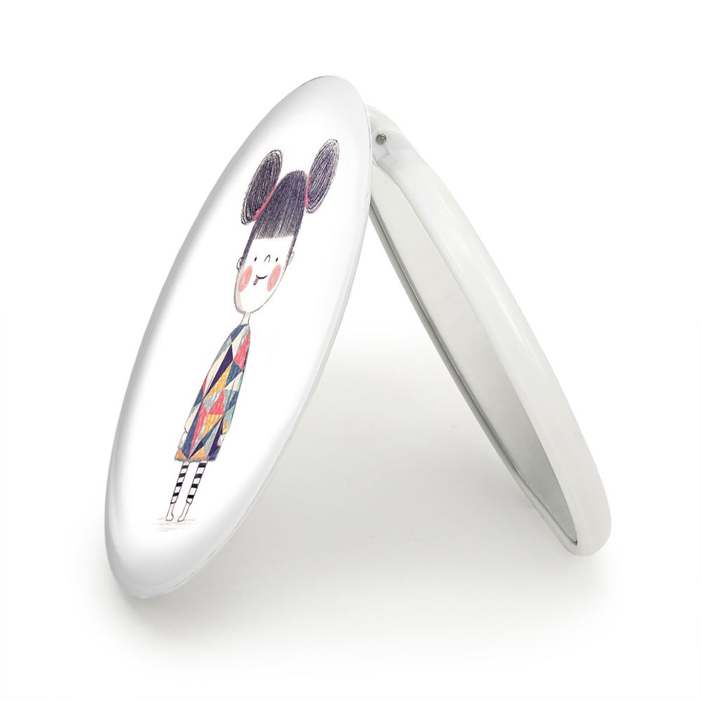 آینه های تاشو دخترونه خندالو، از جنس پلاستیک فشرده ABS تولید شده و به رنگ سفید می باشد. یکی از آینه ها ابعاد واقعی را نشان داده و دیگری با قابلیت بزرگنمایی، جزئیات را بهتر نمایش می دهد.