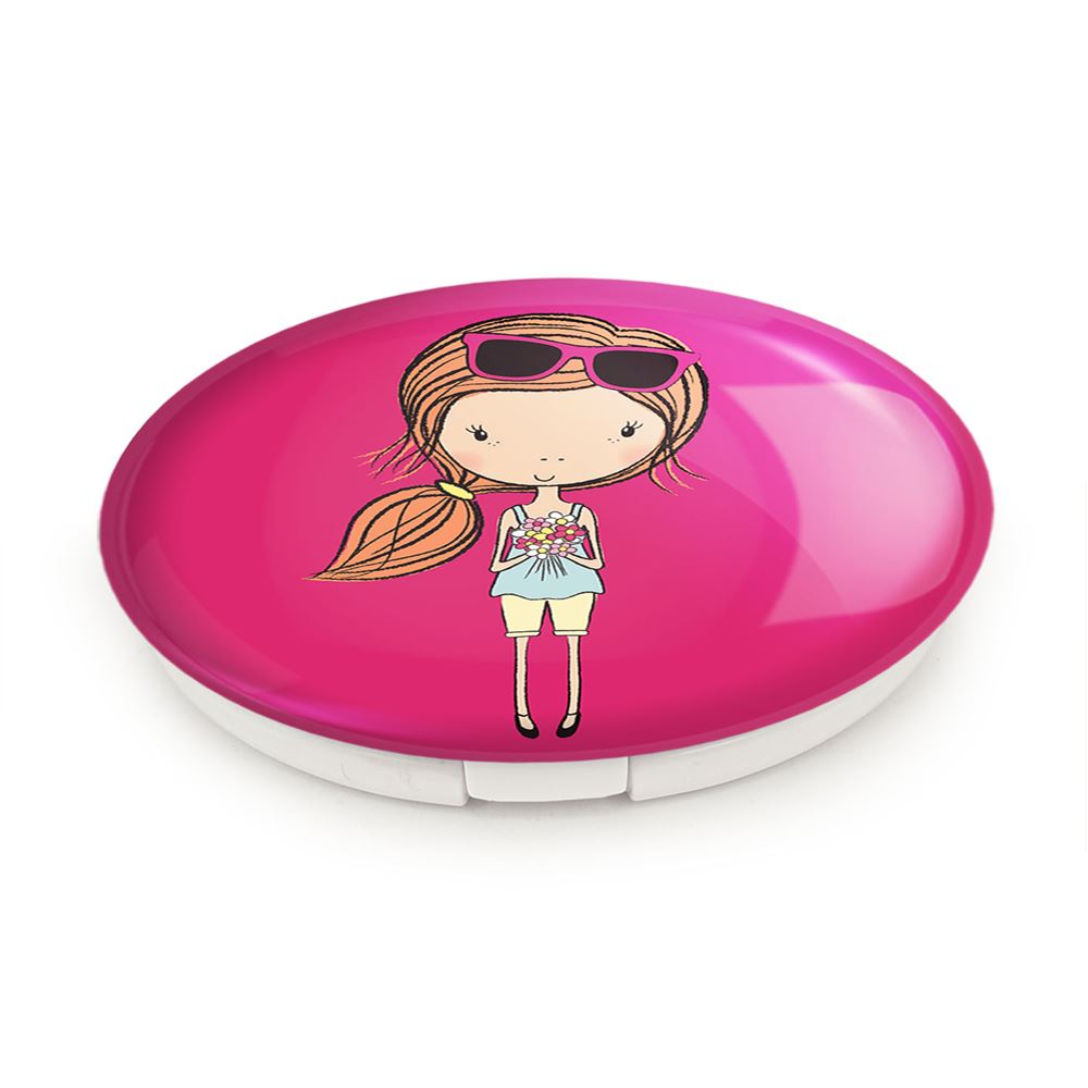 آینه های تاشو دخترونه خندالو، از جنس پلاستیک فشرده ABS تولید شده و به رنگ سفید می باشد. یکی از آینه ها ابعاد واقعی را نشان داده و دیگری با قابلیت بزرگنمایی، جزئیات را بهتر نمایش می دهد.