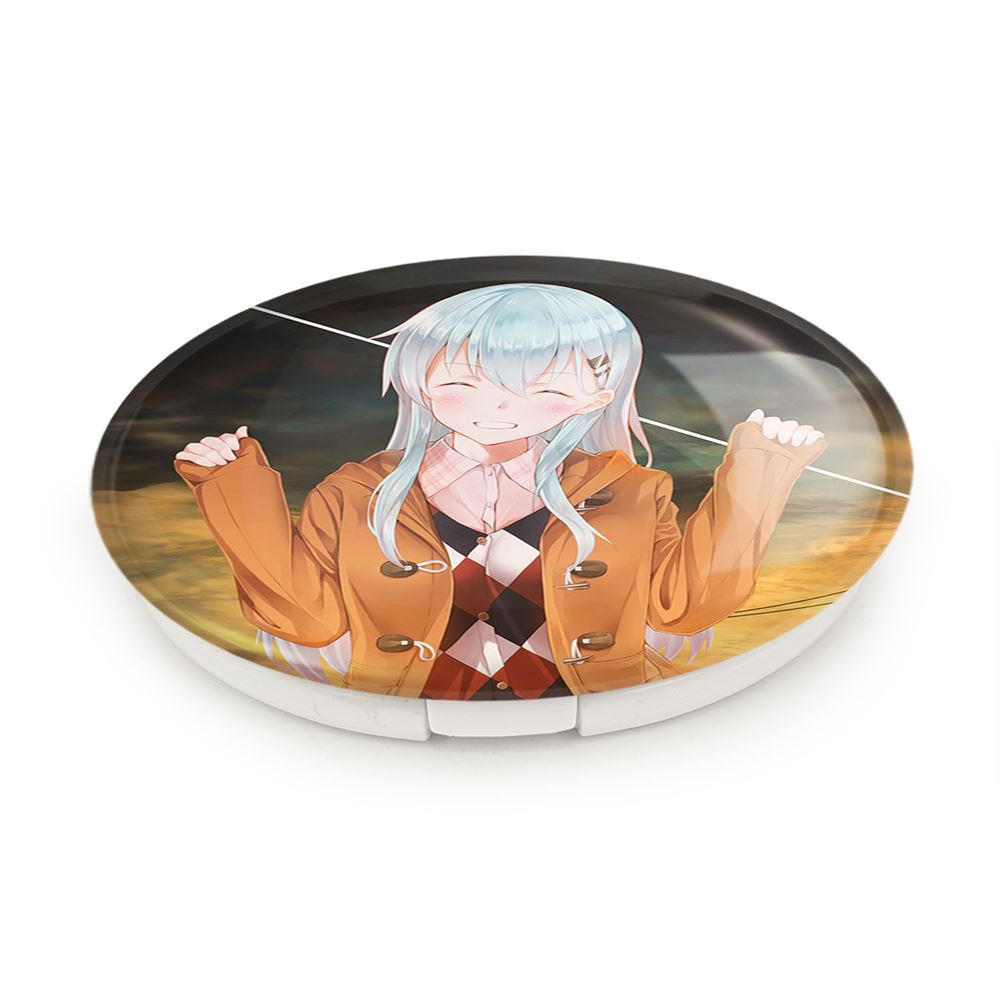 آینه های تاشو دختر انیمه ای خندالو، از جنس پلاستیک فشرده ABS تولید شده و به رنگ سفید می باشد. یکی از آینه ها ابعاد واقعی را نشان داده و دیگری با قابلیت بزرگنمایی، جزئیات را بهتر نمایش می دهد.