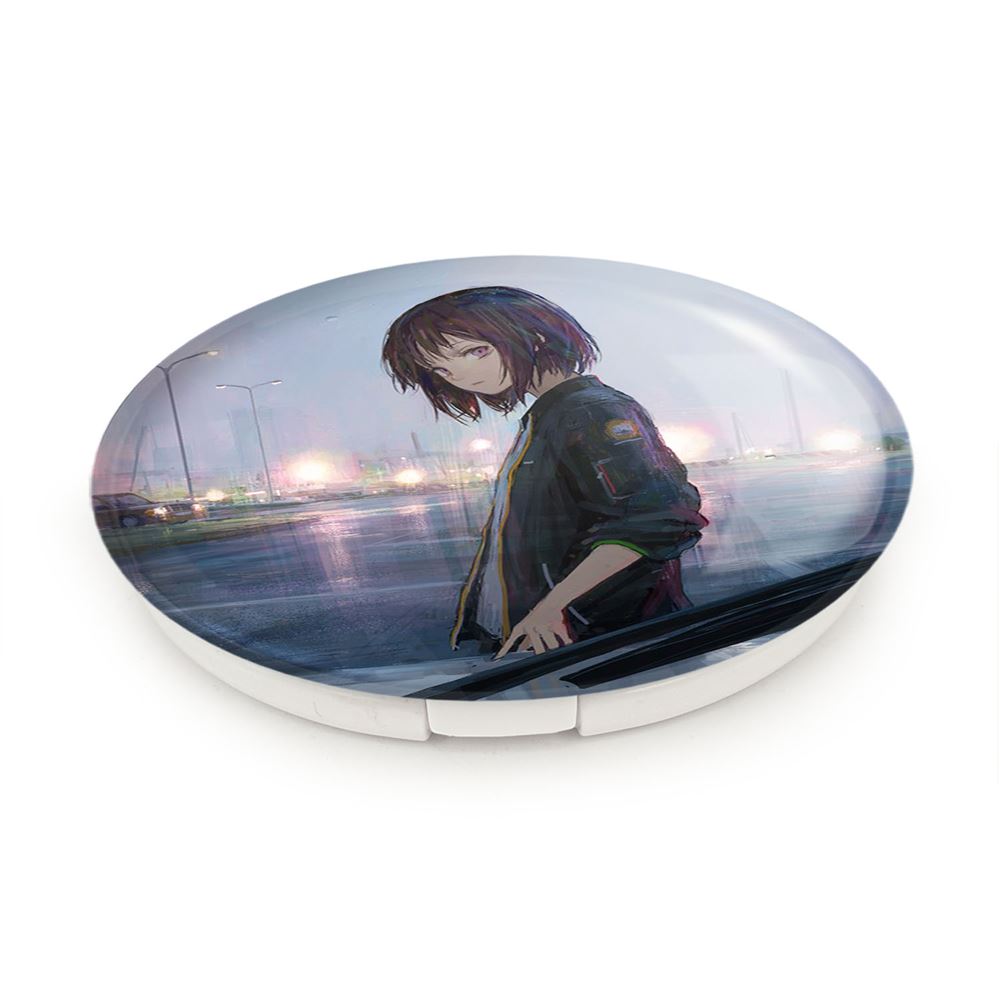 آینه های تاشو دختر انیمه ای خندالو، از جنس پلاستیک فشرده ABS تولید شده و به رنگ سفید می باشد. یکی از آینه ها ابعاد واقعی را نشان داده و دیگری با قابلیت بزرگنمایی، جزئیات را بهتر نمایش می دهد.