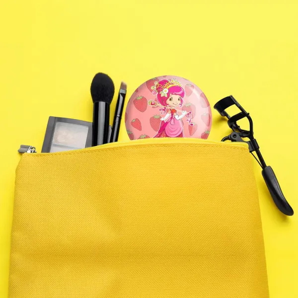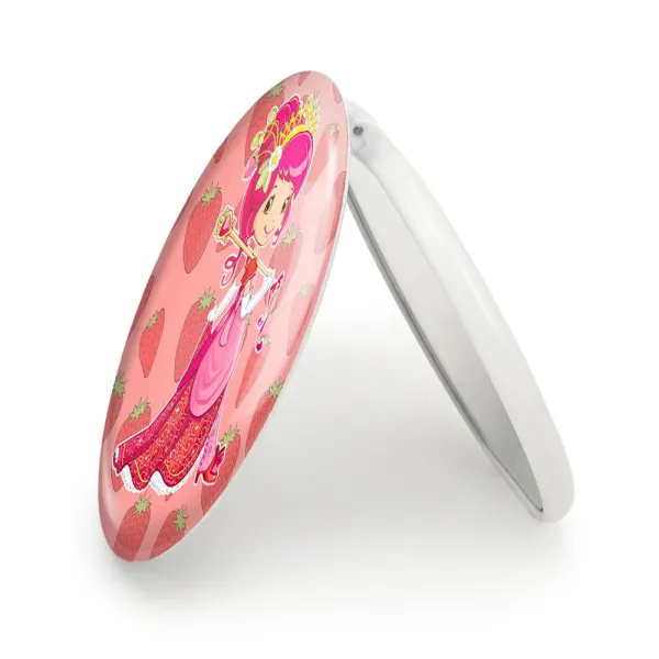 آینه های تاشو دختر توت فرنگی خندالو، از جنس پلاستیک فشرده ABS تولید شده و به رنگ سفید می باشد. یکی از آینه ها ابعاد واقعی را نشان داده و دیگری با قابلیت بزرگنمایی، جزئیات را بهتر نمایش می دهد. ابعاد هر یک از آینه ها، دایره ای به قطر 7.5 سانت می باشد که نه خیلی بزرگ و غیر قابل استفاده در کیف آرایشی ست و نه خیلی کوچک که تصویر خاصی در آن مشاهده نشود. آینه تاشو دختر توت فرنگی سایزی استاندارد و کارآمد دارد و در هر کیفی جا میگیرد. چاپ طرح بوسیله چاپگرهای دیجیتال شش رنگ با شفافیت و کیفیتی مثال زدنی بر روی یک وجه از بدنه ی آینه انجام گرفته و با روکش لمینت حرارتی پوشیده شده که در مقابل آسیب و خط و خش مقاوم بوده و کیفیت بالایی دارد. درب آینه بوسیله قفل بدنه ی آن، باز نمی ماند و کاملا بسته می شود و مناسب قرار گیری در کیف لوازم آرایش و کیف های کوچک دستی نیز هست. آینه های تاشو دختر توت فرنگی خندالو با تنوع طرحی بسیار بالا، سلیقه هر نوع مخاطبی را تامین میکند.