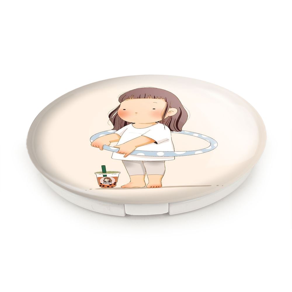 آینه های تاشو دختر ورزشی خندالو، از جنس پلاستیک فشرده ABS تولید شده و به رنگ سفید می باشد. یکی از آینه ها ابعاد واقعی را نشان داده و دیگری با قابلیت بزرگنمایی، جزئیات را بهتر نمایش می دهد. ابعاد هر یک از آینه ها، دایره ای به قطر 7.5 سانت می باشد که نه خیلی بزرگ و غیر قابل استفاده در کیف آرایشی ست و نه خیلی کوچک که تصویر خاصی در آن مشاهده نشود. آینه تاشو دختر ورزشی سایزی استاندارد و کارآمد دارد و در هر کیفی جا میگیرد. چاپ طرح بوسیله چاپگرهای دیجیتال شش رنگ با شفافیت و کیفیتی مثال زدنی بر روی یک وجه از بدنه ی آینه انجام گرفته و با روکش لمینت حرارتی پوشیده شده که در مقابل آسیب و خط و خش مقاوم بوده و کیفیت بالایی دارد. درب آینه بوسیله قفل بدنه ی آن، باز نمی ماند و کاملا بسته می شود و مناسب قرار گیری در کیف لوازم آرایش و کیف های کوچک دستی نیز هست. آینه های تاشو دختر ورزشی خندالو با تنوع طرحی بسیار بالا، سلیقه هر نوع مخاطبی را تامین میکند.