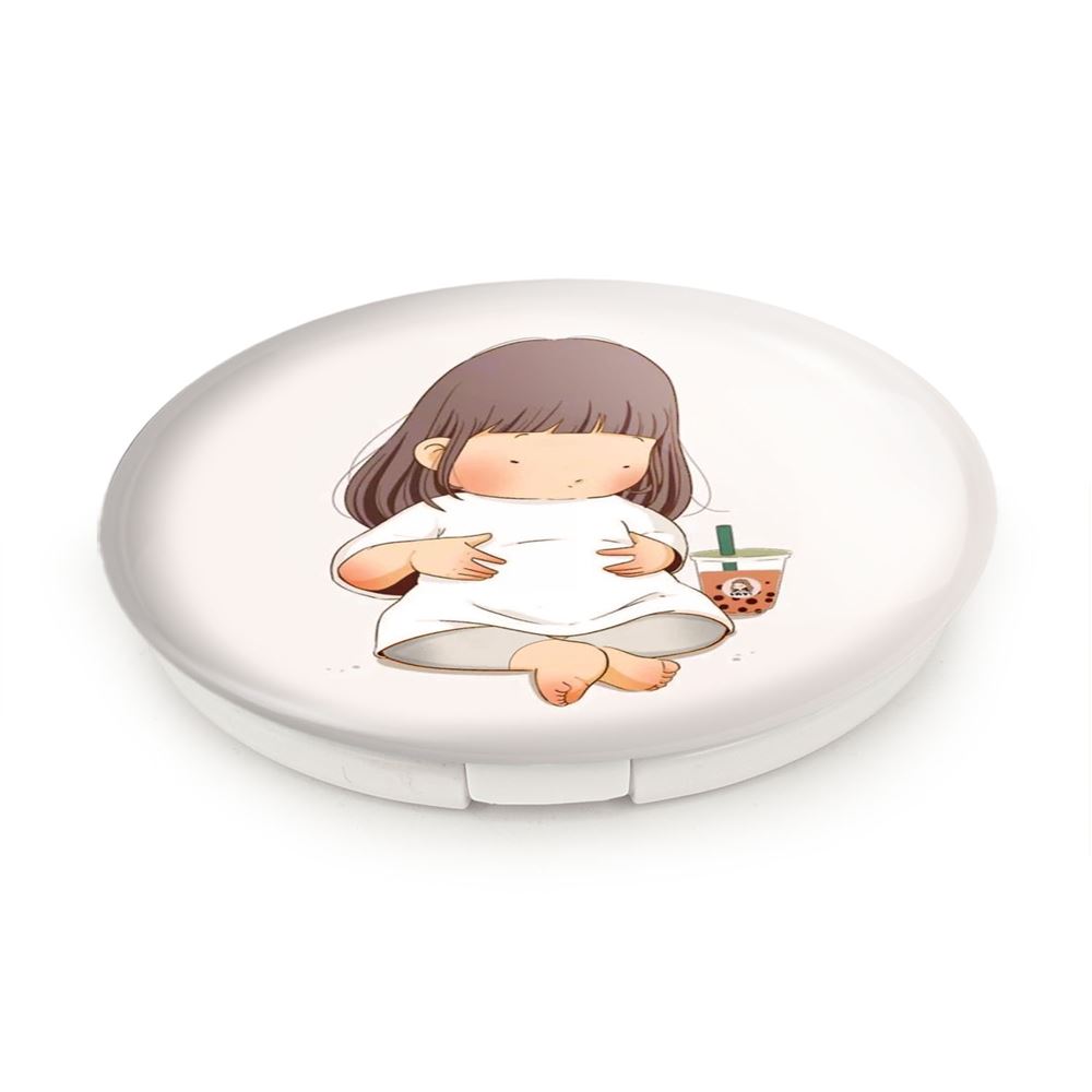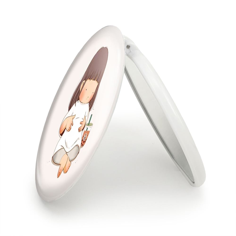 آینه های تاشو دختر ورزشی خندالو، از جنس پلاستیک فشرده ABS تولید شده و به رنگ سفید می باشد. یکی از آینه ها ابعاد واقعی را نشان داده و دیگری با قابلیت بزرگنمایی، جزئیات را بهتر نمایش می دهد. ابعاد هر یک از آینه ها، دایره ای به قطر 7.5 سانت می باشد که نه خیلی بزرگ و غیر قابل استفاده در کیف آرایشی ست و نه خیلی کوچک که تصویر خاصی در آن مشاهده نشود. آینه تاشو دختر ورزشی سایزی استاندارد و کارآمد دارد و در هر کیفی جا میگیرد. چاپ طرح بوسیله چاپگرهای دیجیتال شش رنگ با شفافیت و کیفیتی مثال زدنی بر روی یک وجه از بدنه ی آینه انجام گرفته و با روکش لمینت حرارتی پوشیده شده که در مقابل آسیب و خط و خش مقاوم بوده و کیفیت بالایی دارد. درب آینه بوسیله قفل بدنه ی آن، باز نمی ماند و کاملا بسته می شود و مناسب قرار گیری در کیف لوازم آرایش و کیف های کوچک دستی نیز هست. آینه های تاشو دختر ورزشی خندالو با تنوع طرحی بسیار بالا، سلیقه هر نوع مخاطبی را تامین میکند.