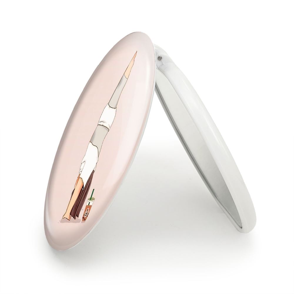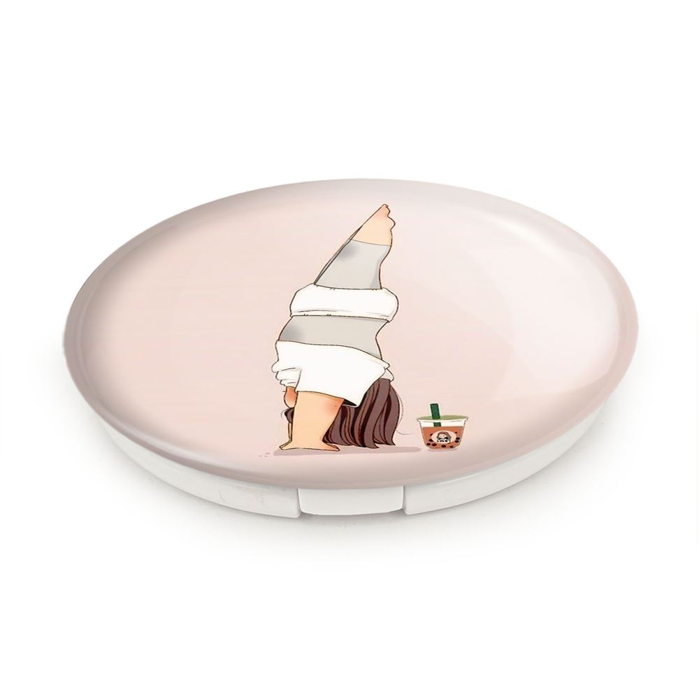 آینه های تاشو دختر ورزشی خندالو، از جنس پلاستیک فشرده ABS تولید شده و به رنگ سفید می باشد. یکی از آینه ها ابعاد واقعی را نشان داده و دیگری با قابلیت بزرگنمایی، جزئیات را بهتر نمایش می دهد. ابعاد هر یک از آینه ها، دایره ای به قطر 7.5 سانت می باشد که نه خیلی بزرگ و غیر قابل استفاده در کیف آرایشی ست و نه خیلی کوچک که تصویر خاصی در آن مشاهده نشود. آینه تاشو دختر ورزشی سایزی استاندارد و کارآمد دارد و در هر کیفی جا میگیرد. چاپ طرح بوسیله چاپگرهای دیجیتال شش رنگ با شفافیت و کیفیتی مثال زدنی بر روی یک وجه از بدنه ی آینه انجام گرفته و با روکش لمینت حرارتی پوشیده شده که در مقابل آسیب و خط و خش مقاوم بوده و کیفیت بالایی دارد. درب آینه بوسیله قفل بدنه ی آن، باز نمی ماند و کاملا بسته می شود و مناسب قرار گیری در کیف لوازم آرایش و کیف های کوچک دستی نیز هست. آینه های تاشو دختر ورزشی خندالو با تنوع طرحی بسیار بالا، سلیقه هر نوع مخاطبی را تامین میکند.