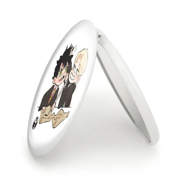 آینه های تاشو دراکو و هری پاتر Harry Potter خندالو، از جنس پلاستیک فشرده ABS تولید شده و به رنگ سفید می باشد. یکی از آینه ها ابعاد واقعی را نشان داده و دیگری با قابلیت بزرگنمایی، جزئیات را بهتر نمایش می دهد. ابعاد هر یک از آینه ها، دایره ای به قطر 7.5 سانت می باشد که نه خیلی بزرگ و غیر قابل استفاده در کیف آرایشی ست و نه خیلی کوچک که تصویر خاصی در آن مشاهده نشود. آینه تاشو دراکو و هری پاتر Harry Potter سایزی استاندارد و کارآمد دارد و در هر کیفی جا میگیرد. چاپ طرح بوسیله چاپگرهای دیجیتال شش رنگ با شفافیت و کیفیتی مثال زدنی بر روی یک وجه از بدنه ی آینه انجام گرفته و با روکش لمینت حرارتی پوشیده شده که در مقابل آسیب و خط و خش مقاوم بوده و کیفیت بالایی دارد. درب آینه بوسیله قفل بدنه ی آن، باز نمی ماند و کاملا بسته می شود و مناسب قرار گیری در کیف لوازم آرایش و کیف های کوچک دستی نیز هست. آینه های تاشو دراکو و هری پاتر Harry Potter خندالو با تنوع طرحی بسیار بالا، سلیقه هر نوع مخاطبی را تامین میکند.