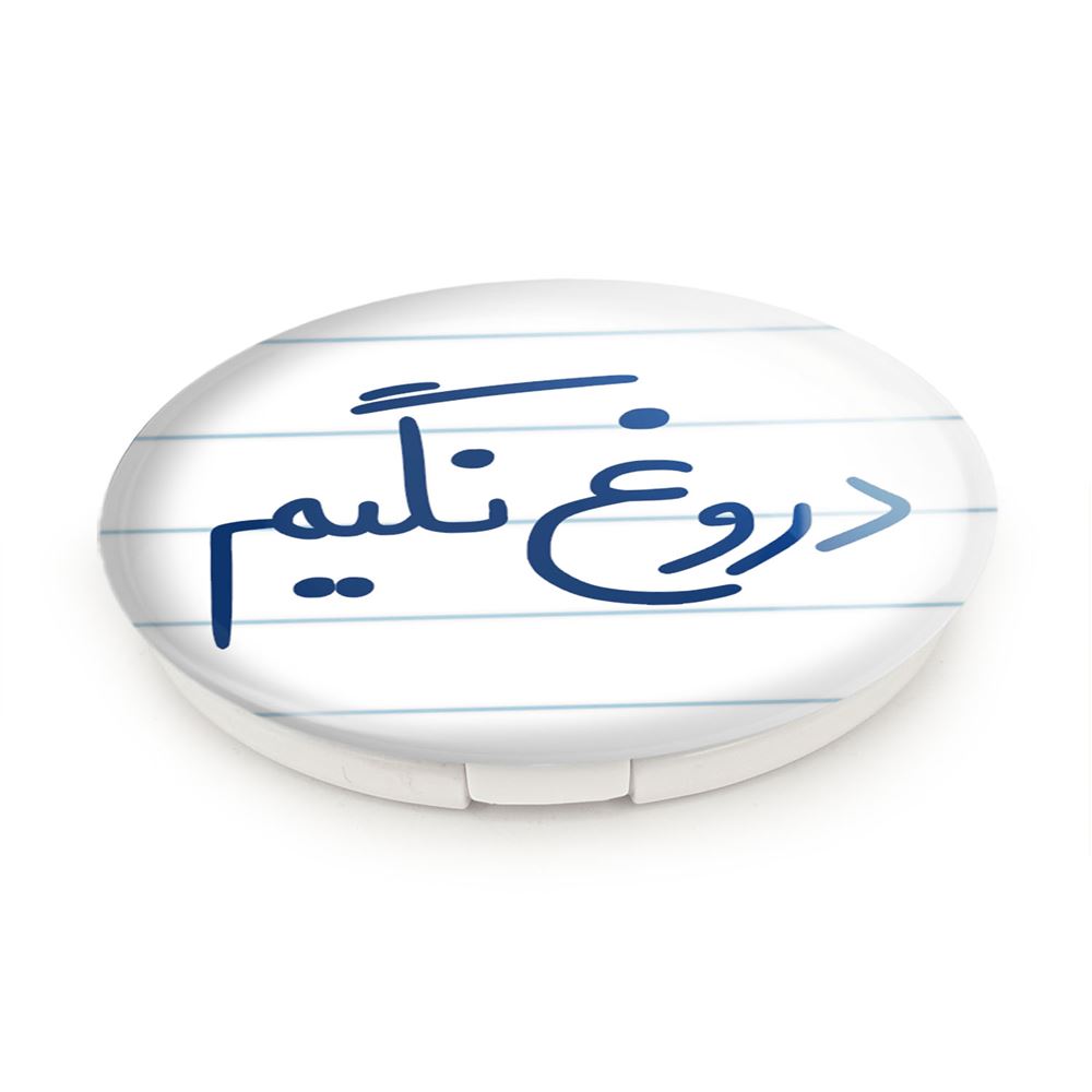 آینه های تاشو دروغ نگیم خندالو، از جنس پلاستیک فشرده ABS تولید شده و به رنگ سفید می باشد. یکی از آینه ها ابعاد واقعی را نشان داده و دیگری با قابلیت بزرگنمایی، جزئیات را بهتر نمایش می دهد. ابعاد هر یک از آینه ها، دایره ای به قطر 7.5 سانت می باشد که نه خیلی بزرگ و غیر قابل استفاده در کیف آرایشی ست و نه خیلی کوچک که تصویر خاصی در آن مشاهده نشود. آینه تاشو دروغ نگیم سایزی استاندارد و کارآمد دارد و در هر کیفی جا میگیرد. چاپ طرح بوسیله چاپگرهای دیجیتال شش رنگ با شفافیت و کیفیتی مثال زدنی بر روی یک وجه از بدنه ی آینه انجام گرفته و با روکش لمینت حرارتی پوشیده شده که در مقابل آسیب و خط و خش مقاوم بوده و کیفیت بالایی دارد. درب آینه بوسیله قفل بدنه ی آن، باز نمی ماند و کاملا بسته می شود و مناسب قرار گیری در کیف لوازم آرایش و کیف های کوچک دستی نیز هست. آینه های تاشو دروغ نگیم خندالو با تنوع طرحی بسیار بالا، سلیقه هر نوع مخاطبی را تامین میکند.