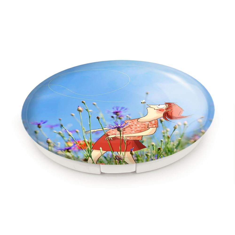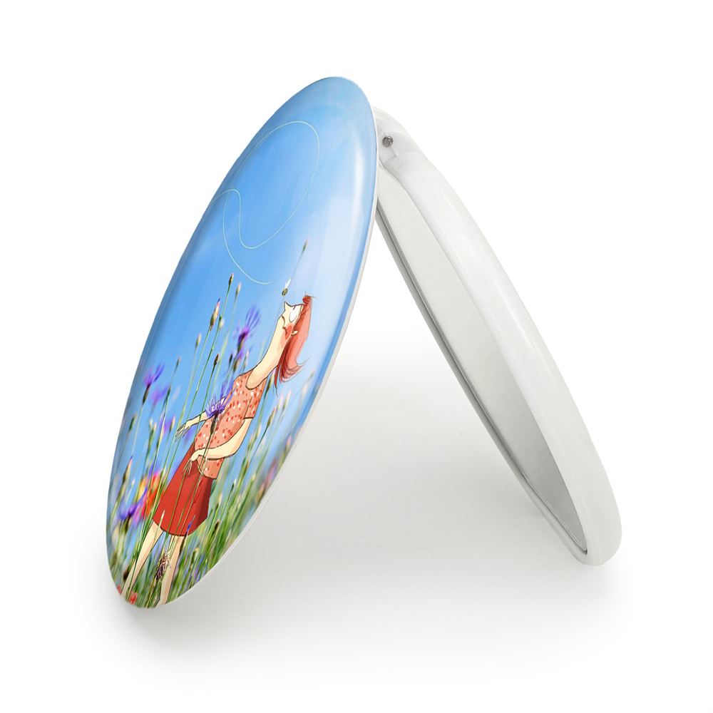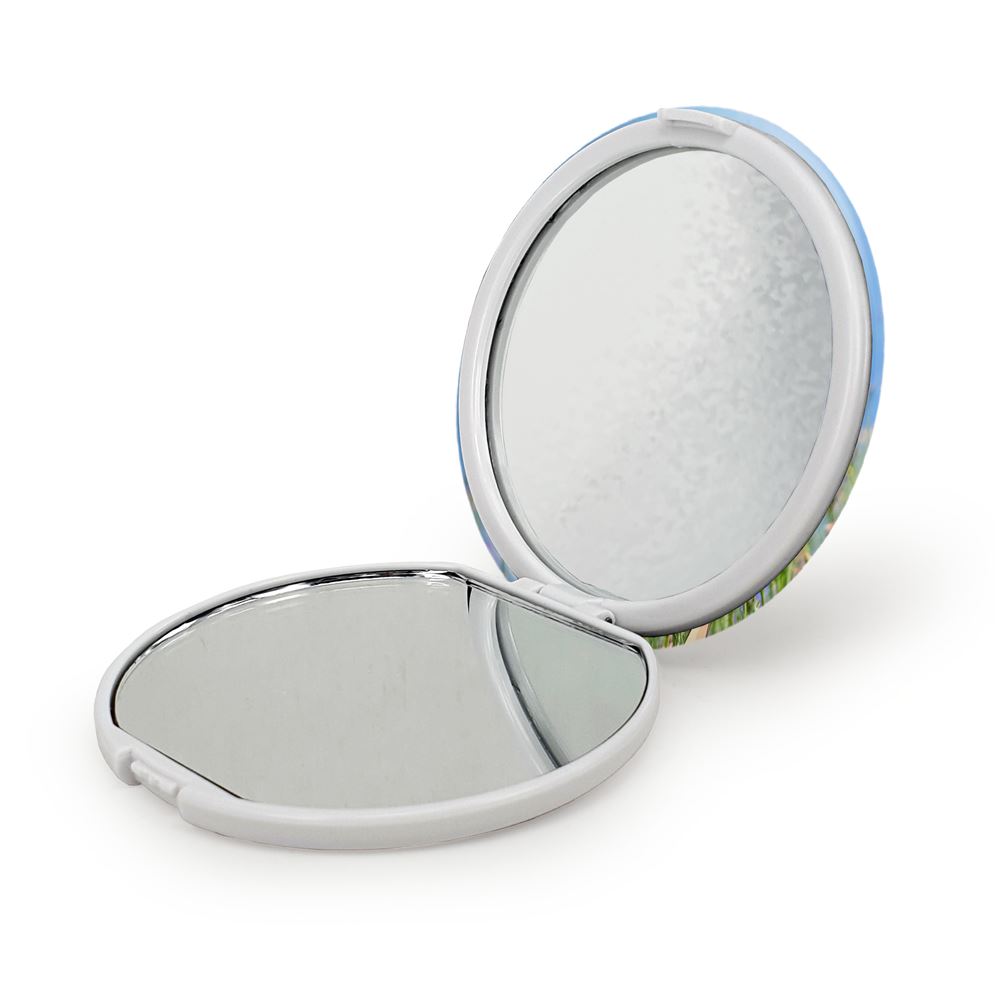 آینه های تاشو دشت گل خندالو، از جنس پلاستیک فشرده ABS تولید شده و به رنگ سفید می باشد. یکی از آینه ها ابعاد واقعی را نشان داده و دیگری با قابلیت بزرگنمایی، جزئیات را بهتر نمایش می دهد. ابعاد هر یک از آینه ها، دایره ای به قطر 7.5 سانت می باشد که نه خیلی بزرگ و غیر قابل استفاده در کیف آرایشی ست و نه خیلی کوچک که تصویر خاصی در آن مشاهده نشود. آینه تاشو دشت گل سایزی استاندارد و کارآمد دارد و در هر کیفی جا میگیرد. چاپ طرح بوسیله چاپگرهای دیجیتال شش رنگ با شفافیت و کیفیتی مثال زدنی بر روی یک وجه از بدنه ی آینه انجام گرفته و با روکش لمینت حرارتی پوشیده شده که در مقابل آسیب و خط و خش مقاوم بوده و کیفیت بالایی دارد. درب آینه بوسیله قفل بدنه ی آن، باز نمی ماند و کاملا بسته می شود و مناسب قرار گیری در کیف لوازم آرایش و کیف های کوچک دستی نیز هست. آینه های تاشو دشت گل خندالو با تنوع طرحی بسیار بالا، سلیقه هر نوع مخاطبی را تامین میکند.