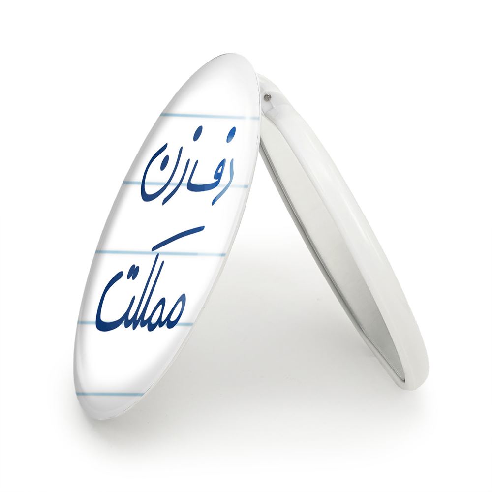 آینه های تاشو دف زن مملکت خندالو، از جنس پلاستیک فشرده ABS تولید شده و به رنگ سفید می باشد. یکی از آینه ها ابعاد واقعی را نشان داده و دیگری با قابلیت بزرگنمایی، جزئیات را بهتر نمایش می دهد. ابعاد هر یک از آینه ها، دایره ای به قطر 7.5 سانت می باشد که نه خیلی بزرگ و غیر قابل استفاده در کیف آرایشی ست و نه خیلی کوچک که تصویر خاصی در آن مشاهده نشود. آینه تاشو دف زن مملکت سایزی استاندارد و کارآمد دارد و در هر کیفی جا میگیرد. چاپ طرح بوسیله چاپگرهای دیجیتال شش رنگ با شفافیت و کیفیتی مثال زدنی بر روی یک وجه از بدنه ی آینه انجام گرفته و با روکش لمینت حرارتی پوشیده شده که در مقابل آسیب و خط و خش مقاوم بوده و کیفیت بالایی دارد. درب آینه بوسیله قفل بدنه ی آن، باز نمی ماند و کاملا بسته می شود و مناسب قرار گیری در کیف لوازم آرایش و کیف های کوچک دستی نیز هست. آینه های تاشو دف زن مملکت خندالو با تنوع طرحی بسیار بالا، سلیقه هر نوع مخاطبی را تامین میکند.