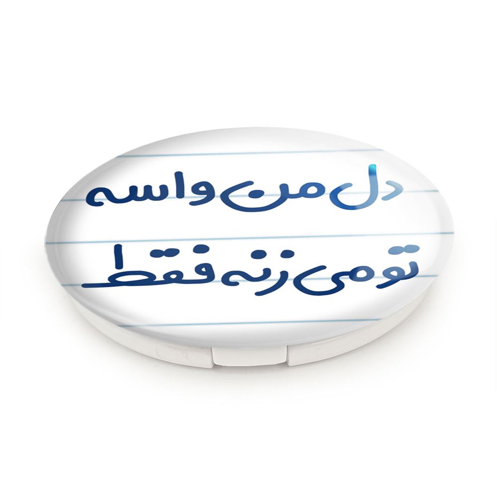 آینه های تاشو دل من واسه تو می زنه فقط خندالو، از جنس پلاستیک فشرده ABS تولید شده و به رنگ سفید می باشد. یکی از آینه ها ابعاد واقعی را نشان داده و دیگری با قابلیت بزرگنمایی، جزئیات را بهتر نمایش می دهد. ابعاد هر یک از آینه ها، دایره ای به قطر 7.5 سانت می باشد که نه خیلی بزرگ و غیر قابل استفاده در کیف آرایشی ست و نه خیلی کوچک که تصویر خاصی در آن مشاهده نشود. آینه تاشو دل من واسه تو می زنه فقط سایزی استاندارد و کارآمد دارد و در هر کیفی جا میگیرد. چاپ طرح بوسیله چاپگرهای دیجیتال شش رنگ با شفافیت و کیفیتی مثال زدنی بر روی یک وجه از بدنه ی آینه انجام گرفته و با روکش لمینت حرارتی پوشیده شده که در مقابل آسیب و خط و خش مقاوم بوده و کیفیت بالایی دارد. درب آینه بوسیله قفل بدنه ی آن، باز نمی ماند و کاملا بسته می شود و مناسب قرار گیری در کیف لوازم آرایش و کیف های کوچک دستی نیز هست. آینه های تاشو دل من واسه تو می زنه فقط خندالو با تنوع طرحی بسیار بالا، سلیقه هر نوع مخاطبی را تامین میکند.