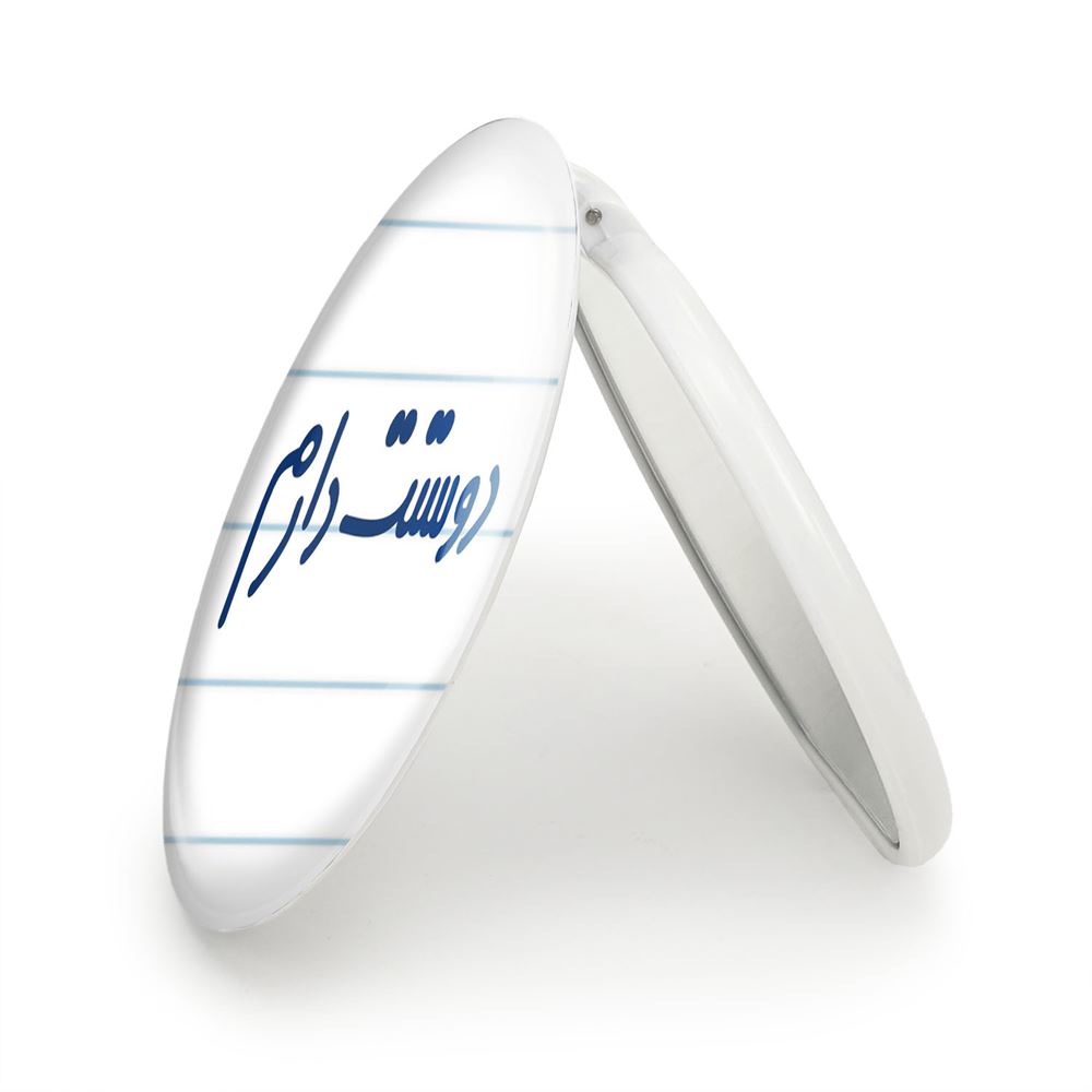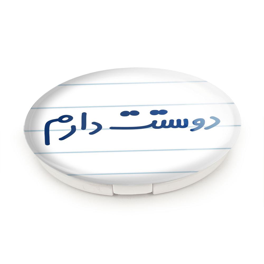 آینه های تاشو دوستت دارم خندالو، از جنس پلاستیک فشرده ABS تولید شده و به رنگ سفید می باشد. یکی از آینه ها ابعاد واقعی را نشان داده و دیگری با قابلیت بزرگنمایی، جزئیات را بهتر نمایش می دهد. ابعاد هر یک از آینه ها، دایره ای به قطر 7.5 سانت می باشد که نه خیلی بزرگ و غیر قابل استفاده در کیف آرایشی ست و نه خیلی کوچک که تصویر خاصی در آن مشاهده نشود. آینه تاشو دوستت دارم سایزی استاندارد و کارآمد دارد و در هر کیفی جا میگیرد. چاپ طرح بوسیله چاپگرهای دیجیتال شش رنگ با شفافیت و کیفیتی مثال زدنی بر روی یک وجه از بدنه ی آینه انجام گرفته و با روکش لمینت حرارتی پوشیده شده که در مقابل آسیب و خط و خش مقاوم بوده و کیفیت بالایی دارد. درب آینه بوسیله قفل بدنه ی آن، باز نمی ماند و کاملا بسته می شود و مناسب قرار گیری در کیف لوازم آرایش و کیف های کوچک دستی نیز هست. آینه های تاشو دوستت دارم خندالو با تنوع طرحی بسیار بالا، سلیقه هر نوع مخاطبی را تامین میکند.
