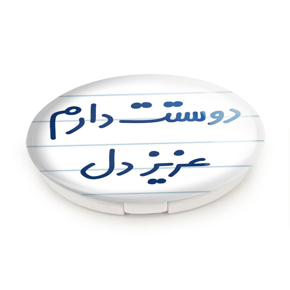 آینه های تاشو دوستت دارم عزیزدل خندالو، از جنس پلاستیک فشرده ABS تولید شده و به رنگ سفید می باشد. یکی از آینه ها ابعاد واقعی را نشان داده و دیگری با قابلیت بزرگنمایی، جزئیات را بهتر نمایش می دهد. ابعاد هر یک از آینه ها، دایره ای به قطر 7.5 سانت می باشد که نه خیلی بزرگ و غیر قابل استفاده در کیف آرایشی ست و نه خیلی کوچک که تصویر خاصی در آن مشاهده نشود. آینه تاشو دوستت دارم عزیزدل سایزی استاندارد و کارآمد دارد و در هر کیفی جا میگیرد. چاپ طرح بوسیله چاپگرهای دیجیتال شش رنگ با شفافیت و کیفیتی مثال زدنی بر روی یک وجه از بدنه ی آینه انجام گرفته و با روکش لمینت حرارتی پوشیده شده که در مقابل آسیب و خط و خش مقاوم بوده و کیفیت بالایی دارد. درب آینه بوسیله قفل بدنه ی آن، باز نمی ماند و کاملا بسته می شود و مناسب قرار گیری در کیف لوازم آرایش و کیف های کوچک دستی نیز هست. آینه های تاشو دوستت دارم عزیزدل خندالو با تنوع طرحی بسیار بالا، سلیقه هر نوع مخاطبی را تامین میکند.