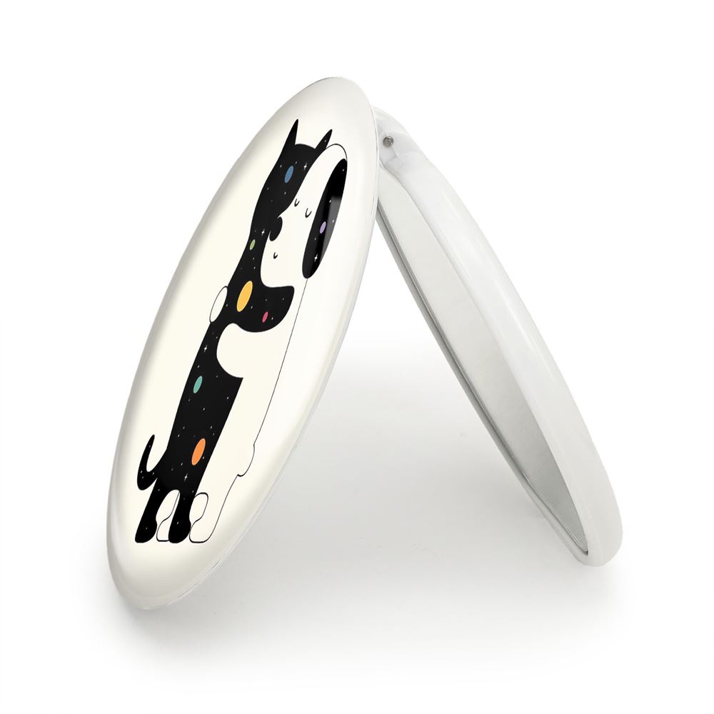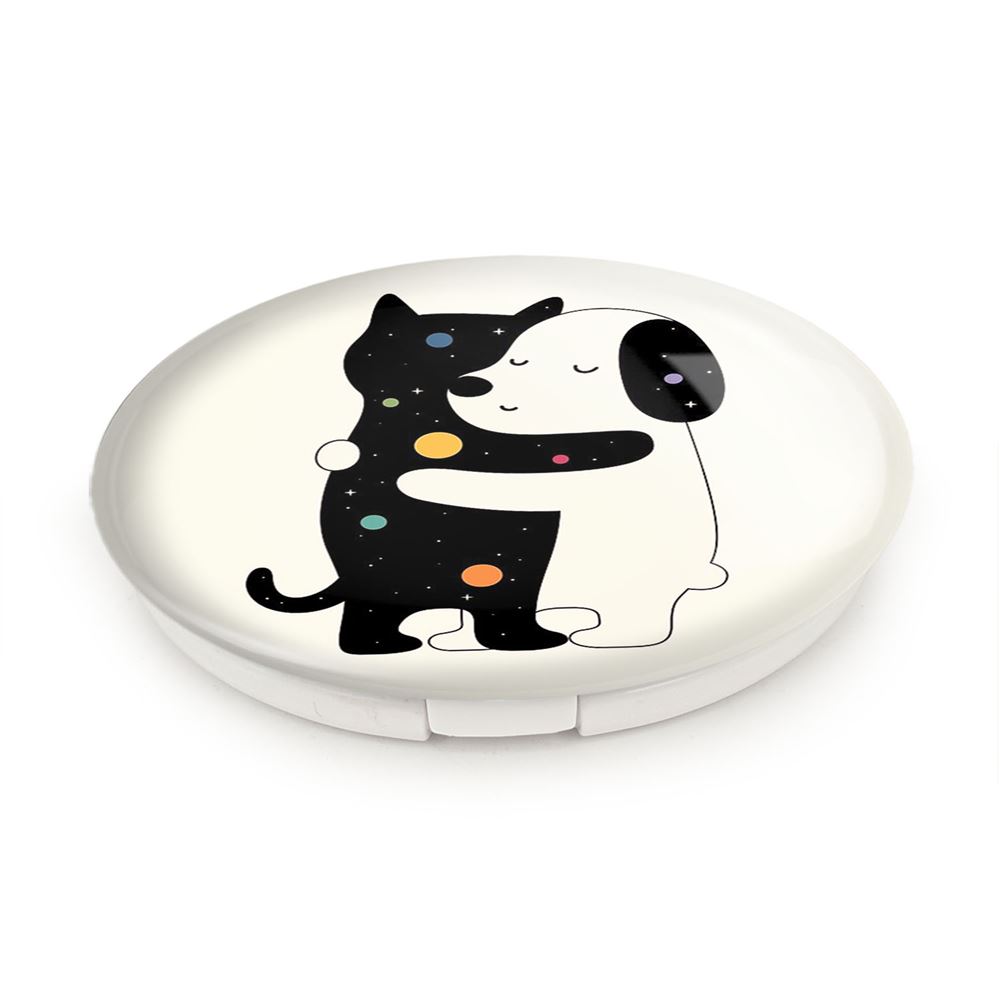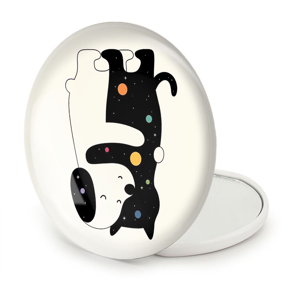 آینه های تاشو دوستی خندالو، از جنس پلاستیک فشرده ABS تولید شده و به رنگ سفید می باشد. یکی از آینه ها ابعاد واقعی را نشان داده و دیگری با قابلیت بزرگنمایی، جزئیات را بهتر نمایش می دهد. ابعاد هر یک از آینه ها، دایره ای به قطر 7.5 سانت می باشد که نه خیلی بزرگ و غیر قابل استفاده در کیف آرایشی ست و نه خیلی کوچک که تصویر خاصی در آن مشاهده نشود. آینه تاشو دوستی سایزی استاندارد و کارآمد دارد و در هر کیفی جا میگیرد. چاپ طرح بوسیله چاپگرهای دیجیتال شش رنگ با شفافیت و کیفیتی مثال زدنی بر روی یک وجه از بدنه ی آینه انجام گرفته و با روکش لمینت حرارتی پوشیده شده که در مقابل آسیب و خط و خش مقاوم بوده و کیفیت بالایی دارد. درب آینه بوسیله قفل بدنه ی آن، باز نمی ماند و کاملا بسته می شود و مناسب قرار گیری در کیف لوازم آرایش و کیف های کوچک دستی نیز هست. آینه های تاشو دوستی خندالو با تنوع طرحی بسیار بالا، سلیقه هر نوع مخاطبی را تامین میکند.