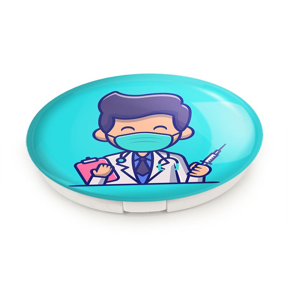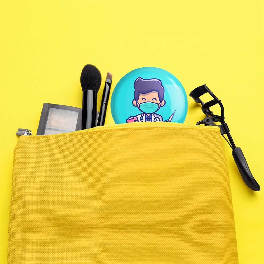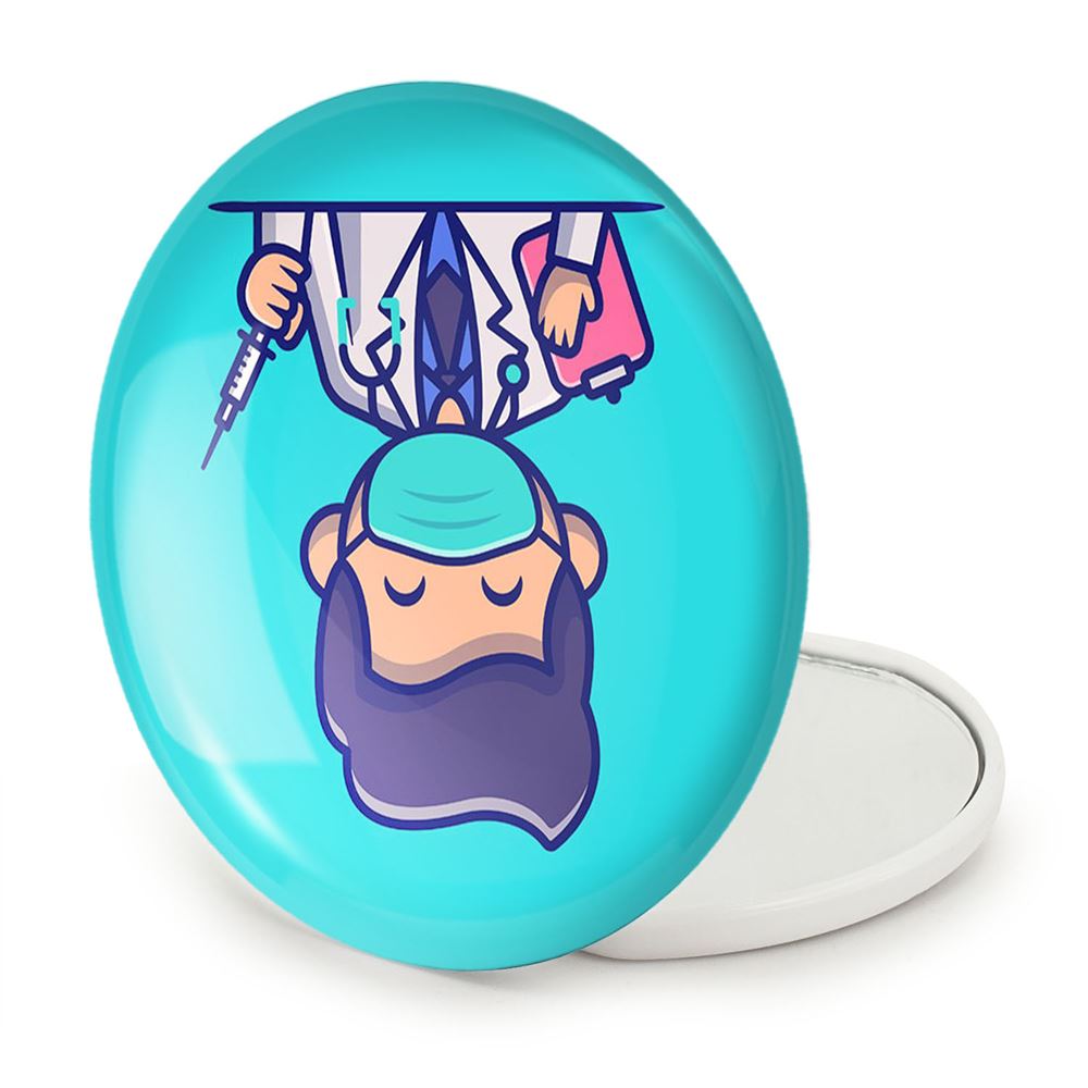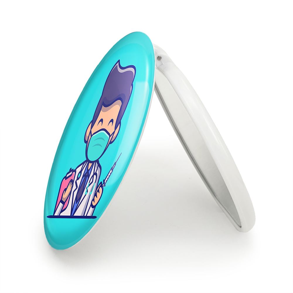 آینه های تاشو دکتر خندالو، از جنس پلاستیک فشرده ABS تولید شده و به رنگ سفید می باشد. یکی از آینه ها ابعاد واقعی را نشان داده و دیگری با قابلیت بزرگنمایی، جزئیات را بهتر نمایش می دهد. ابعاد هر یک از آینه ها، دایره ای به قطر 7.5 سانت می باشد که نه خیلی بزرگ و غیر قابل استفاده در کیف آرایشی ست و نه خیلی کوچک که تصویر خاصی در آن مشاهده نشود. آینه تاشو دکتر سایزی استاندارد و کارآمد دارد و در هر کیفی جا میگیرد. چاپ طرح بوسیله چاپگرهای دیجیتال شش رنگ با شفافیت و کیفیتی مثال زدنی بر روی یک وجه از بدنه ی آینه انجام گرفته و با روکش لمینت حرارتی پوشیده شده که در مقابل آسیب و خط و خش مقاوم بوده و کیفیت بالایی دارد. درب آینه بوسیله قفل بدنه ی آن، باز نمی ماند و کاملا بسته می شود و مناسب قرار گیری در کیف لوازم آرایش و کیف های کوچک دستی نیز هست. آینه های تاشو دکتر خندالو با تنوع طرحی بسیار بالا، سلیقه هر نوع مخاطبی را تامین میکند.