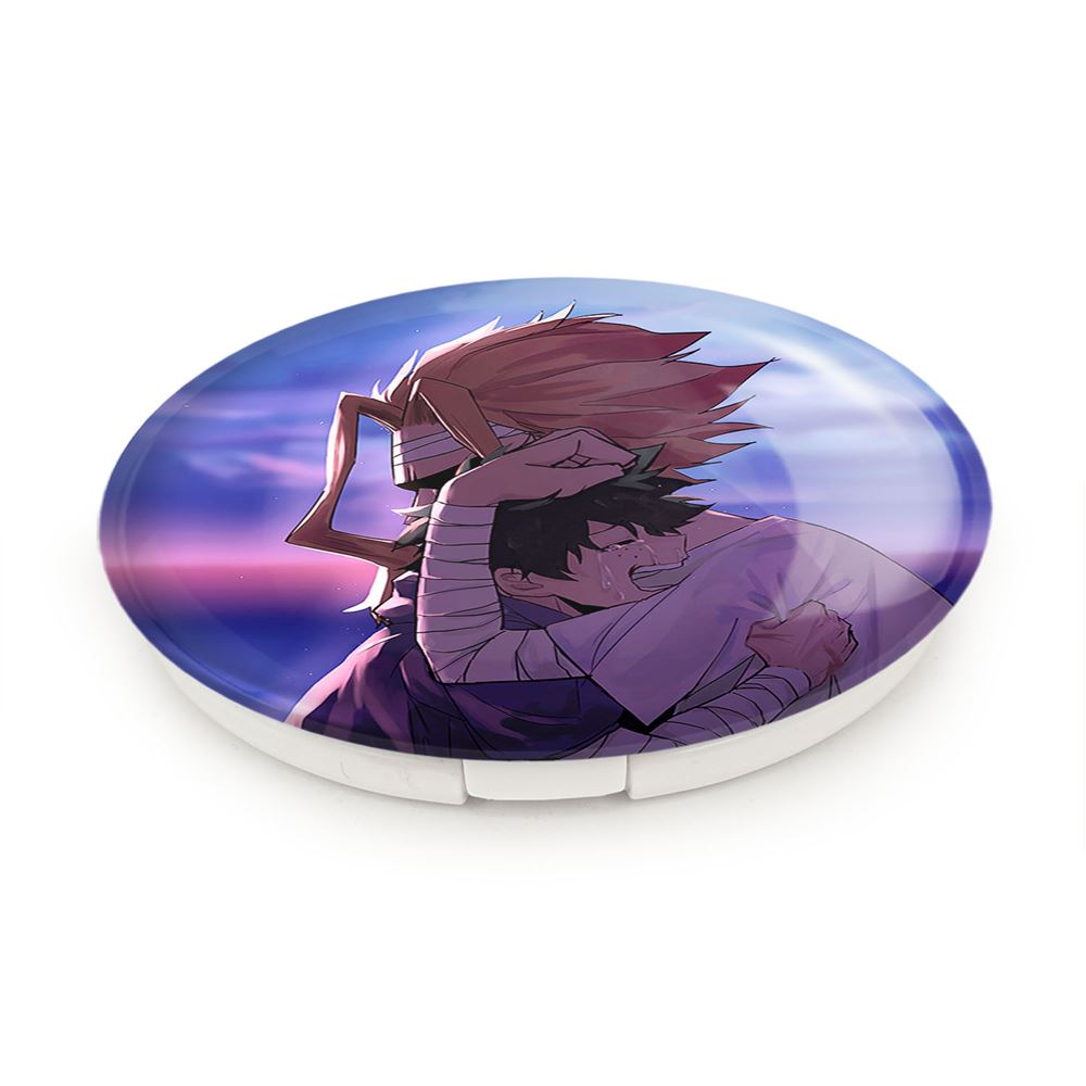 آینه های تاشو دکو و آلمایت انیمه آکادمی قهرمان من خندالو، از جنس پلاستیک فشرده ABS تولید شده و به رنگ سفید می باشد. یکی از آینه ها ابعاد واقعی را نشان داده و دیگری با قابلیت بزرگنمایی، جزئیات را بهتر نمایش می دهد. ابعاد هر یک از آینه ها، دایره ای به قطر 7.5 سانت می باشد که نه خیلی بزرگ و غیر قابل استفاده در کیف آرایشی ست و نه خیلی کوچک که تصویر خاصی در آن مشاهده نشود. آینه تاشو دکو و آلمایت انیمه آکادمی قهرمان من سایزی استاندارد و کارآمد دارد و در هر کیفی جا میگیرد. چاپ طرح بوسیله چاپگرهای دیجیتال شش رنگ با شفافیت و کیفیتی مثال زدنی بر روی یک وجه از بدنه ی آینه انجام گرفته و با روکش لمینت حرارتی پوشیده شده که در مقابل آسیب و خط و خش مقاوم بوده و کیفیت بالایی دارد. درب آینه بوسیله قفل بدنه ی آن، باز نمی ماند و کاملا بسته می شود و مناسب قرار گیری در کیف لوازم آرایش و کیف های کوچک دستی نیز هست. آینه های تاشو دکو و آلمایت انیمه آکادمی قهرمان من خندالو با تنوع طرحی بسیار بالا، سلیقه هر نوع مخاطبی را تامین میکند.