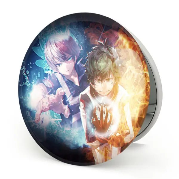 آینه های تاشو دکو و شوتو انیمه آکادمی قهرمان من My Hero Academia خندالو، از جنس پلاستیک فشرده ABS تولید شده و به رنگ سفید می باشد. یکی از آینه ها ابعاد واقعی را نشان داده و دیگری با قابلیت بزرگنمایی، جزئیات را بهتر نمایش می دهد. ابعاد هر یک از آینه ها، دایره ای به قطر 7.5 سانت می باشد که نه خیلی بزرگ و غیر قابل استفاده در کیف آرایشی ست و نه خیلی کوچک که تصویر خاصی در آن مشاهده نشود. آینه تاشو دکو و شوتو انیمه آکادمی قهرمان من My Hero Academia سایزی استاندارد و کارآمد دارد و در هر کیفی جا میگیرد. چاپ طرح بوسیله چاپگرهای دیجیتال شش رنگ با شفافیت و کیفیتی مثال زدنی بر روی یک وجه از بدنه ی آینه انجام گرفته و با روکش لمینت حرارتی پوشیده شده که در مقابل آسیب و خط و خش مقاوم بوده و کیفیت بالایی دارد. درب آینه بوسیله قفل بدنه ی آن، باز نمی ماند و کاملا بسته می شود و مناسب قرار گیری در کیف لوازم آرایش و کیف های کوچک دستی نیز هست. آینه های تاشو دکو و شوتو انیمه آکادمی قهرمان من My Hero Academia خندالو با تنوع طرحی بسیار بالا، سلیقه هر نوع مخاطبی را تامین میکند.