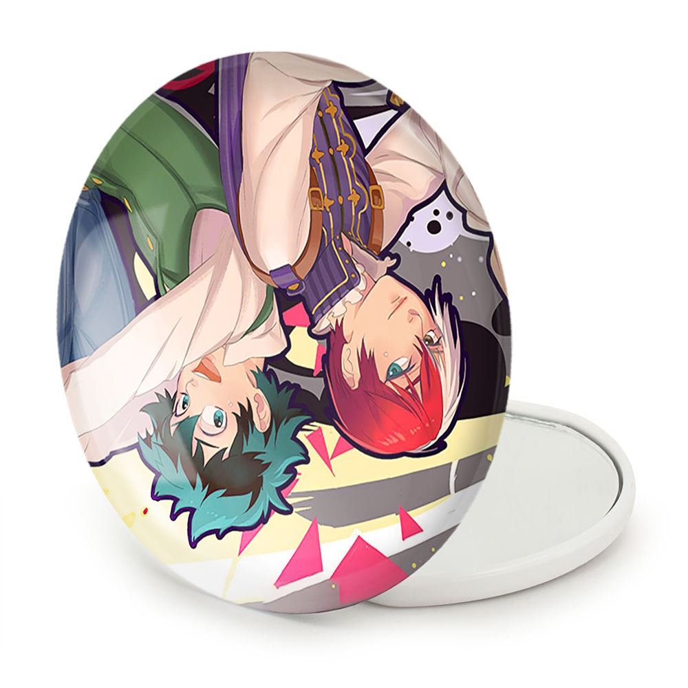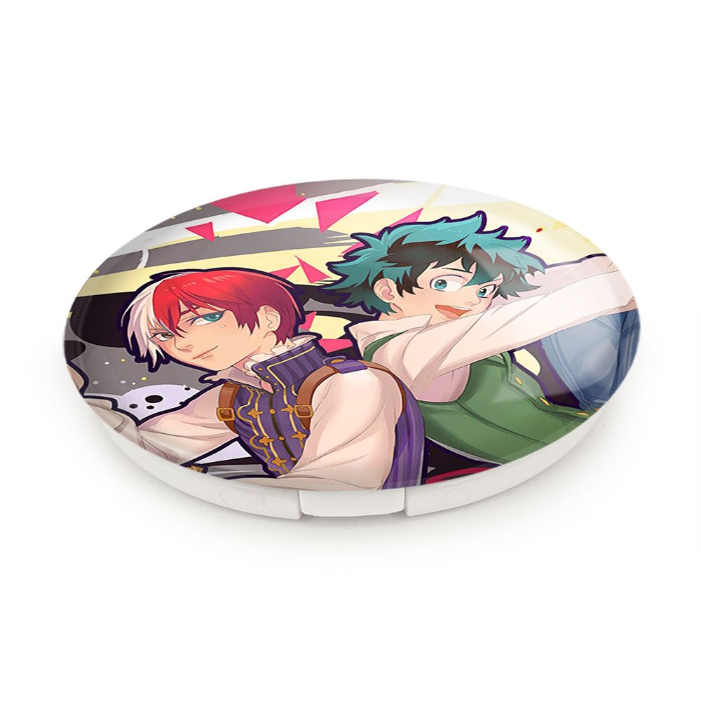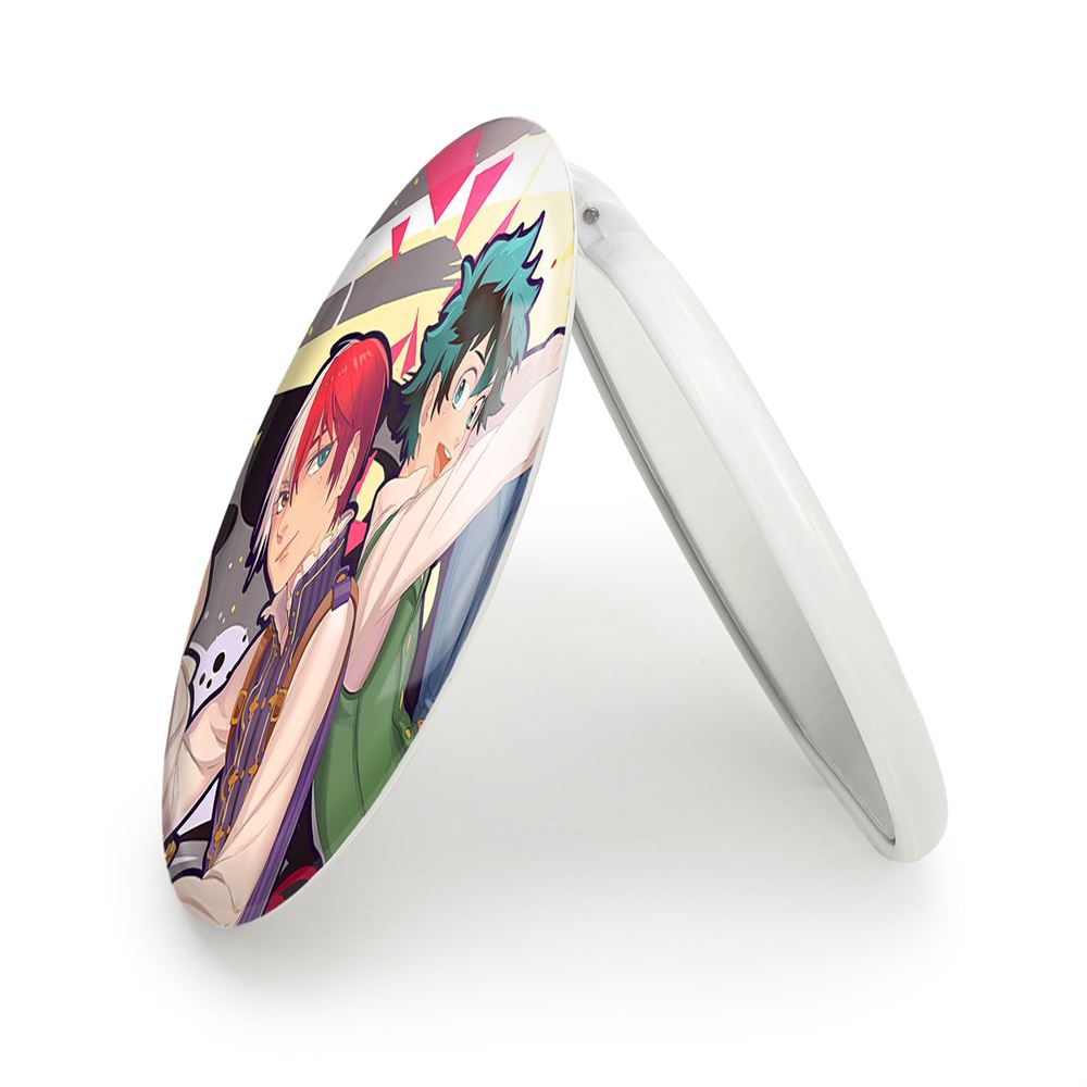 آینه های تاشو دکو و شوتو انیمه آکادمی قهرمان من My Hero Academia خندالو، از جنس پلاستیک فشرده ABS تولید شده و به رنگ سفید می باشد. یکی از آینه ها ابعاد واقعی را نشان داده و دیگری با قابلیت بزرگنمایی، جزئیات را بهتر نمایش می دهد. ابعاد هر یک از آینه ها، دایره ای به قطر 7.5 سانت می باشد که نه خیلی بزرگ و غیر قابل استفاده در کیف آرایشی ست و نه خیلی کوچک که تصویر خاصی در آن مشاهده نشود. آینه تاشو دکو و شوتو انیمه آکادمی قهرمان من My Hero Academia سایزی استاندارد و کارآمد دارد و در هر کیفی جا میگیرد. چاپ طرح بوسیله چاپگرهای دیجیتال شش رنگ با شفافیت و کیفیتی مثال زدنی بر روی یک وجه از بدنه ی آینه انجام گرفته و با روکش لمینت حرارتی پوشیده شده که در مقابل آسیب و خط و خش مقاوم بوده و کیفیت بالایی دارد. درب آینه بوسیله قفل بدنه ی آن، باز نمی ماند و کاملا بسته می شود و مناسب قرار گیری در کیف لوازم آرایش و کیف های کوچک دستی نیز هست. آینه های تاشو دکو و شوتو انیمه آکادمی قهرمان من My Hero Academia خندالو با تنوع طرحی بسیار بالا، سلیقه هر نوع مخاطبی را تامین میکند.