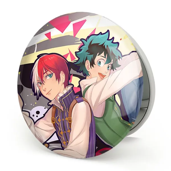 آینه های تاشو دکو و شوتو انیمه آکادمی قهرمان من My Hero Academia خندالو، از جنس پلاستیک فشرده ABS تولید شده و به رنگ سفید می باشد. یکی از آینه ها ابعاد واقعی را نشان داده و دیگری با قابلیت بزرگنمایی، جزئیات را بهتر نمایش می دهد. ابعاد هر یک از آینه ها، دایره ای به قطر 7.5 سانت می باشد که نه خیلی بزرگ و غیر قابل استفاده در کیف آرایشی ست و نه خیلی کوچک که تصویر خاصی در آن مشاهده نشود. آینه تاشو دکو و شوتو انیمه آکادمی قهرمان من My Hero Academia سایزی استاندارد و کارآمد دارد و در هر کیفی جا میگیرد. چاپ طرح بوسیله چاپگرهای دیجیتال شش رنگ با شفافیت و کیفیتی مثال زدنی بر روی یک وجه از بدنه ی آینه انجام گرفته و با روکش لمینت حرارتی پوشیده شده که در مقابل آسیب و خط و خش مقاوم بوده و کیفیت بالایی دارد. درب آینه بوسیله قفل بدنه ی آن، باز نمی ماند و کاملا بسته می شود و مناسب قرار گیری در کیف لوازم آرایش و کیف های کوچک دستی نیز هست. آینه های تاشو دکو و شوتو انیمه آکادمی قهرمان من My Hero Academia خندالو با تنوع طرحی بسیار بالا، سلیقه هر نوع مخاطبی را تامین میکند.
