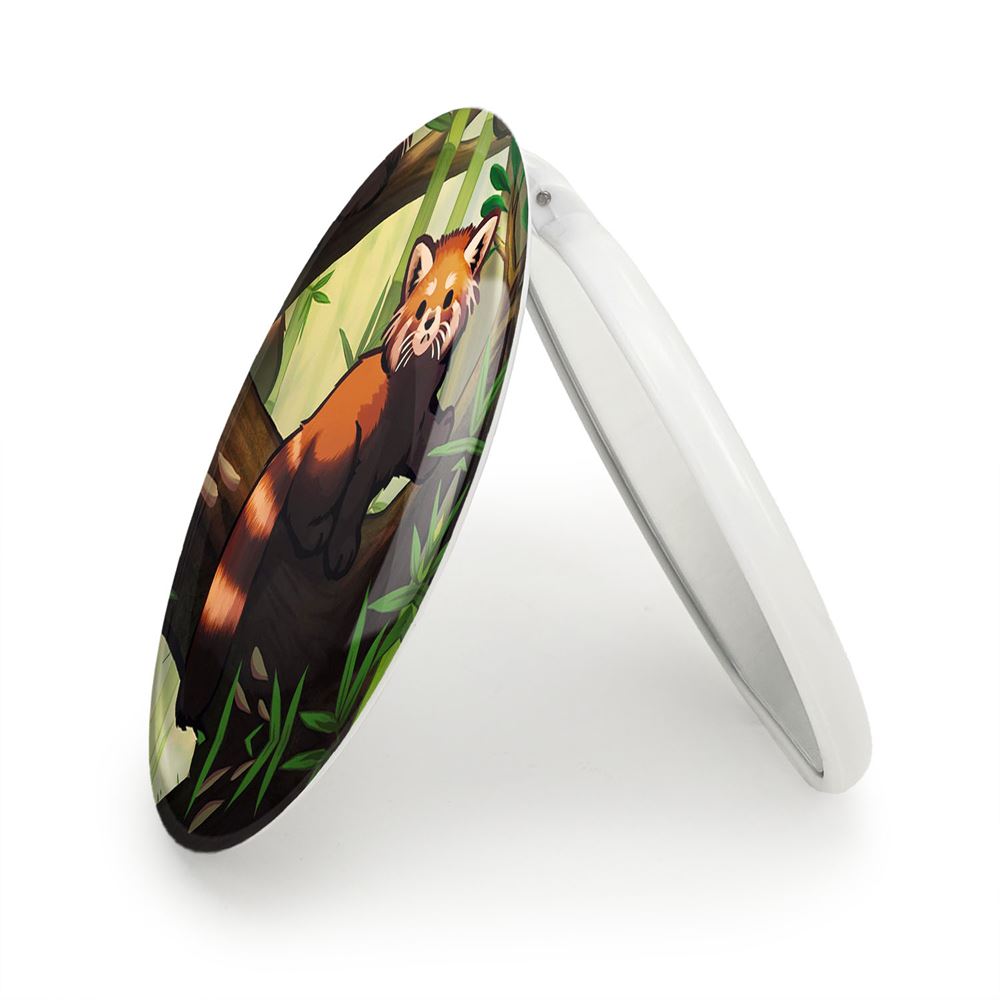آینه های تاشو راکون حیوانات بامزه خندالو، از جنس پلاستیک فشرده ABS تولید شده و به رنگ سفید می باشد. یکی از آینه ها ابعاد واقعی را نشان داده و دیگری با قابلیت بزرگنمایی، جزئیات را بهتر نمایش می دهد. ابعاد هر یک از آینه ها، دایره ای به قطر 7.5 سانت می باشد که نه خیلی بزرگ و غیر قابل استفاده در کیف آرایشی ست و نه خیلی کوچک که تصویر خاصی در آن مشاهده نشود. آینه تاشو راکون حیوانات بامزه سایزی استاندارد و کارآمد دارد و در هر کیفی جا میگیرد. چاپ طرح بوسیله چاپگرهای دیجیتال شش رنگ با شفافیت و کیفیتی مثال زدنی بر روی یک وجه از بدنه ی آینه انجام گرفته و با روکش لمینت حرارتی پوشیده شده که در مقابل آسیب و خط و خش مقاوم بوده و کیفیت بالایی دارد. درب آینه بوسیله قفل بدنه ی آن، باز نمی ماند و کاملا بسته می شود و مناسب قرار گیری در کیف لوازم آرایش و کیف های کوچک دستی نیز هست. آینه های تاشو راکون حیوانات بامزه خندالو با تنوع طرحی بسیار بالا، سلیقه هر نوع مخاطبی را تامین میکند.
