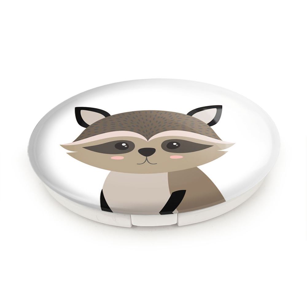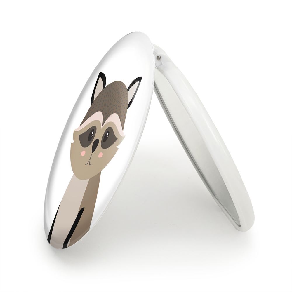 آینه های تاشو راکون خندالو، از جنس پلاستیک فشرده ABS تولید شده و به رنگ سفید می باشد. یکی از آینه ها ابعاد واقعی را نشان داده و دیگری با قابلیت بزرگنمایی، جزئیات را بهتر نمایش می دهد. ابعاد هر یک از آینه ها، دایره ای به قطر 7.5 سانت می باشد که نه خیلی بزرگ و غیر قابل استفاده در کیف آرایشی ست و نه خیلی کوچک که تصویر خاصی در آن مشاهده نشود. آینه تاشو راکون سایزی استاندارد و کارآمد دارد و در هر کیفی جا میگیرد. چاپ طرح بوسیله چاپگرهای دیجیتال شش رنگ با شفافیت و کیفیتی مثال زدنی بر روی یک وجه از بدنه ی آینه انجام گرفته و با روکش لمینت حرارتی پوشیده شده که در مقابل آسیب و خط و خش مقاوم بوده و کیفیت بالایی دارد. درب آینه بوسیله قفل بدنه ی آن، باز نمی ماند و کاملا بسته می شود و مناسب قرار گیری در کیف لوازم آرایش و کیف های کوچک دستی نیز هست. آینه های تاشو راکون خندالو با تنوع طرحی بسیار بالا، سلیقه هر نوع مخاطبی را تامین میکند.