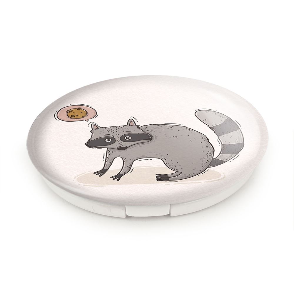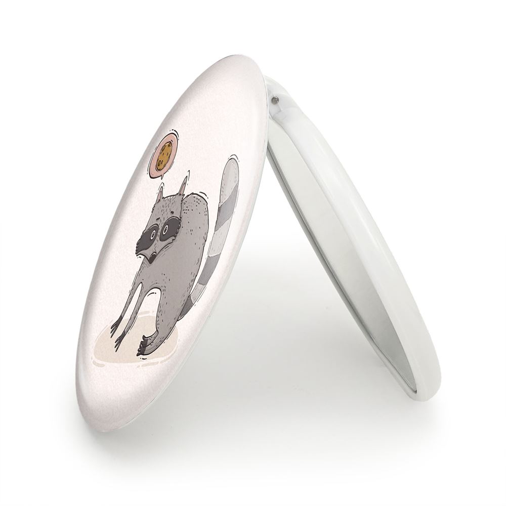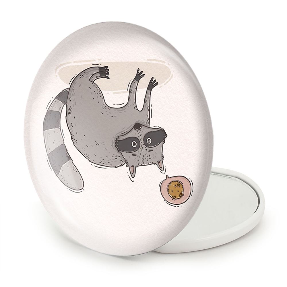 آینه های تاشو راکون خندالو، از جنس پلاستیک فشرده ABS تولید شده و به رنگ سفید می باشد. یکی از آینه ها ابعاد واقعی را نشان داده و دیگری با قابلیت بزرگنمایی، جزئیات را بهتر نمایش می دهد. ابعاد هر یک از آینه ها، دایره ای به قطر 7.5 سانت می باشد که نه خیلی بزرگ و غیر قابل استفاده در کیف آرایشی ست و نه خیلی کوچک که تصویر خاصی در آن مشاهده نشود. آینه تاشو راکون سایزی استاندارد و کارآمد دارد و در هر کیفی جا میگیرد. چاپ طرح بوسیله چاپگرهای دیجیتال شش رنگ با شفافیت و کیفیتی مثال زدنی بر روی یک وجه از بدنه ی آینه انجام گرفته و با روکش لمینت حرارتی پوشیده شده که در مقابل آسیب و خط و خش مقاوم بوده و کیفیت بالایی دارد. درب آینه بوسیله قفل بدنه ی آن، باز نمی ماند و کاملا بسته می شود و مناسب قرار گیری در کیف لوازم آرایش و کیف های کوچک دستی نیز هست. آینه های تاشو راکون خندالو با تنوع طرحی بسیار بالا، سلیقه هر نوع مخاطبی را تامین میکند.