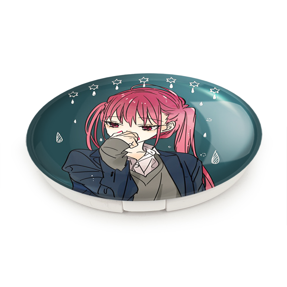 آینه های تاشو رمی انیمه هوریمیا خندالو، از جنس پلاستیک فشرده ABS تولید شده و به رنگ سفید می باشد. یکی از آینه ها ابعاد واقعی را نشان داده و دیگری با قابلیت بزرگنمایی، جزئیات را بهتر نمایش می دهد. ابعاد هر یک از آینه ها، دایره ای به قطر 7.5 سانت می باشد که نه خیلی بزرگ و غیر قابل استفاده در کیف آرایشی ست و نه خیلی کوچک که تصویر خاصی در آن مشاهده نشود. آینه تاشو رمی انیمه هوریمیا سایزی استاندارد و کارآمد دارد و در هر کیفی جا میگیرد. چاپ طرح بوسیله چاپگرهای دیجیتال شش رنگ با شفافیت و کیفیتی مثال زدنی بر روی یک وجه از بدنه ی آینه انجام گرفته و با روکش لمینت حرارتی پوشیده شده که در مقابل آسیب و خط و خش مقاوم بوده و کیفیت بالایی دارد. درب آینه بوسیله قفل بدنه ی آن، باز نمی ماند و کاملا بسته می شود و مناسب قرار گیری در کیف لوازم آرایش و کیف های کوچک دستی نیز هست. آینه های تاشو رمی انیمه هوریمیا خندالو با تنوع طرحی بسیار بالا، سلیقه هر نوع مخاطبی را تامین میکند.