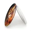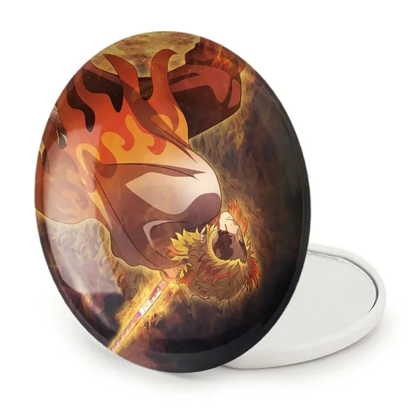 آینه های تاشو رنگوکو کیوجیرو انیمه شیطان کش خندالو، از جنس پلاستیک فشرده ABS تولید شده و به رنگ سفید می باشد. یکی از آینه ها ابعاد واقعی را نشان داده و دیگری با قابلیت بزرگنمایی، جزئیات را بهتر نمایش می دهد. ابعاد هر یک از آینه ها، دایره ای به قطر 7.5 سانت می باشد که نه خیلی بزرگ و غیر قابل استفاده در کیف آرایشی ست و نه خیلی کوچک که تصویر خاصی در آن مشاهده نشود. آینه تاشو رنگوکو کیوجیرو انیمه شیطان کش سایزی استاندارد و کارآمد دارد و در هر کیفی جا میگیرد. چاپ طرح بوسیله چاپگرهای دیجیتال شش رنگ با شفافیت و کیفیتی مثال زدنی بر روی یک وجه از بدنه ی آینه انجام گرفته و با روکش لمینت حرارتی پوشیده شده که در مقابل آسیب و خط و خش مقاوم بوده و کیفیت بالایی دارد. درب آینه بوسیله قفل بدنه ی آن، باز نمی ماند و کاملا بسته می شود و مناسب قرار گیری در کیف لوازم آرایش و کیف های کوچک دستی نیز هست. آینه های تاشو رنگوکو کیوجیرو انیمه شیطان کش خندالو با تنوع طرحی بسیار بالا، سلیقه هر نوع مخاطبی را تامین میکند.