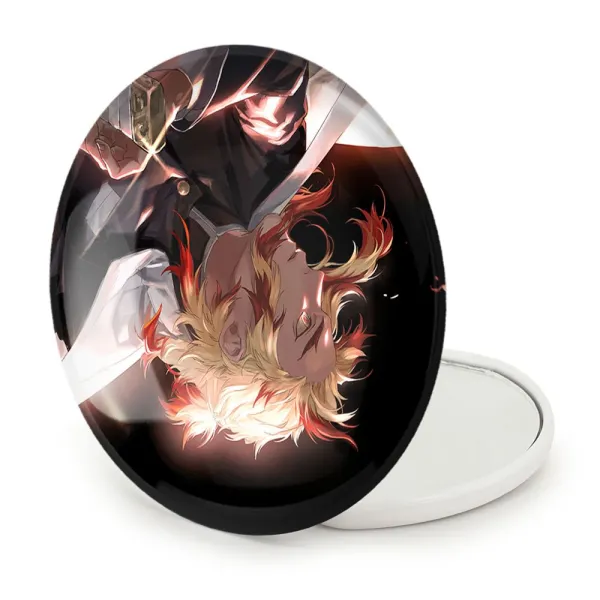 آینه های تاشو رنگوکو کیوجیرو انیمه شیطان کش خندالو، از جنس پلاستیک فشرده ABS تولید شده و به رنگ سفید می باشد. یکی از آینه ها ابعاد واقعی را نشان داده و دیگری با قابلیت بزرگنمایی، جزئیات را بهتر نمایش می دهد. ابعاد هر یک از آینه ها، دایره ای به قطر 7.5 سانت می باشد که نه خیلی بزرگ و غیر قابل استفاده در کیف آرایشی ست و نه خیلی کوچک که تصویر خاصی در آن مشاهده نشود. آینه تاشو رنگوکو کیوجیرو انیمه شیطان کش سایزی استاندارد و کارآمد دارد و در هر کیفی جا میگیرد. چاپ طرح بوسیله چاپگرهای دیجیتال شش رنگ با شفافیت و کیفیتی مثال زدنی بر روی یک وجه از بدنه ی آینه انجام گرفته و با روکش لمینت حرارتی پوشیده شده که در مقابل آسیب و خط و خش مقاوم بوده و کیفیت بالایی دارد. درب آینه بوسیله قفل بدنه ی آن، باز نمی ماند و کاملا بسته می شود و مناسب قرار گیری در کیف لوازم آرایش و کیف های کوچک دستی نیز هست. آینه های تاشو رنگوکو کیوجیرو انیمه شیطان کش خندالو با تنوع طرحی بسیار بالا، سلیقه هر نوع مخاطبی را تامین میکند.