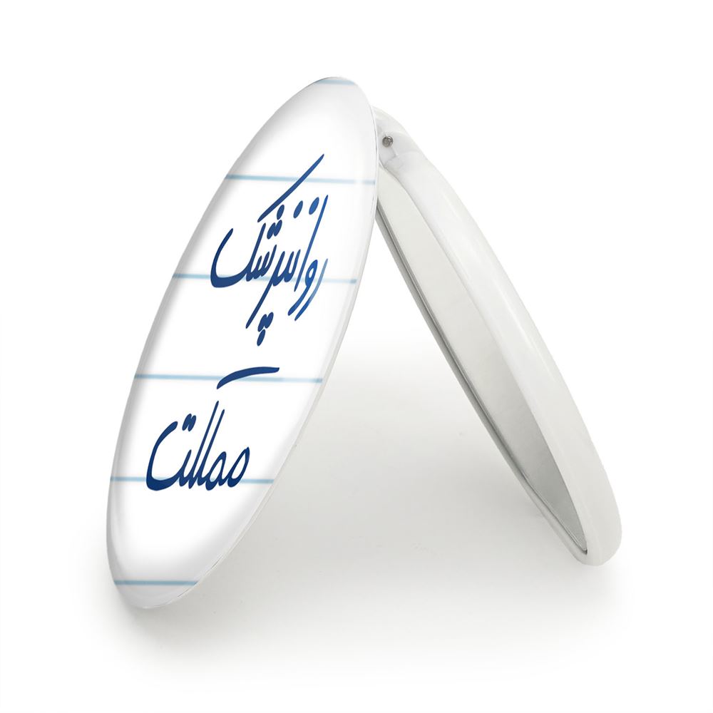 آینه های تاشو روانپزشک مملکت خندالو، از جنس پلاستیک فشرده ABS تولید شده و به رنگ سفید می باشد. یکی از آینه ها ابعاد واقعی را نشان داده و دیگری با قابلیت بزرگنمایی، جزئیات را بهتر نمایش می دهد. ابعاد هر یک از آینه ها، دایره ای به قطر 7.5 سانت می باشد که نه خیلی بزرگ و غیر قابل استفاده در کیف آرایشی ست و نه خیلی کوچک که تصویر خاصی در آن مشاهده نشود. آینه تاشو روانپزشک مملکت سایزی استاندارد و کارآمد دارد و در هر کیفی جا میگیرد. چاپ طرح بوسیله چاپگرهای دیجیتال شش رنگ با شفافیت و کیفیتی مثال زدنی بر روی یک وجه از بدنه ی آینه انجام گرفته و با روکش لمینت حرارتی پوشیده شده که در مقابل آسیب و خط و خش مقاوم بوده و کیفیت بالایی دارد. درب آینه بوسیله قفل بدنه ی آن، باز نمی ماند و کاملا بسته می شود و مناسب قرار گیری در کیف لوازم آرایش و کیف های کوچک دستی نیز هست. آینه های تاشو روانپزشک مملکت خندالو با تنوع طرحی بسیار بالا، سلیقه هر نوع مخاطبی را تامین میکند.