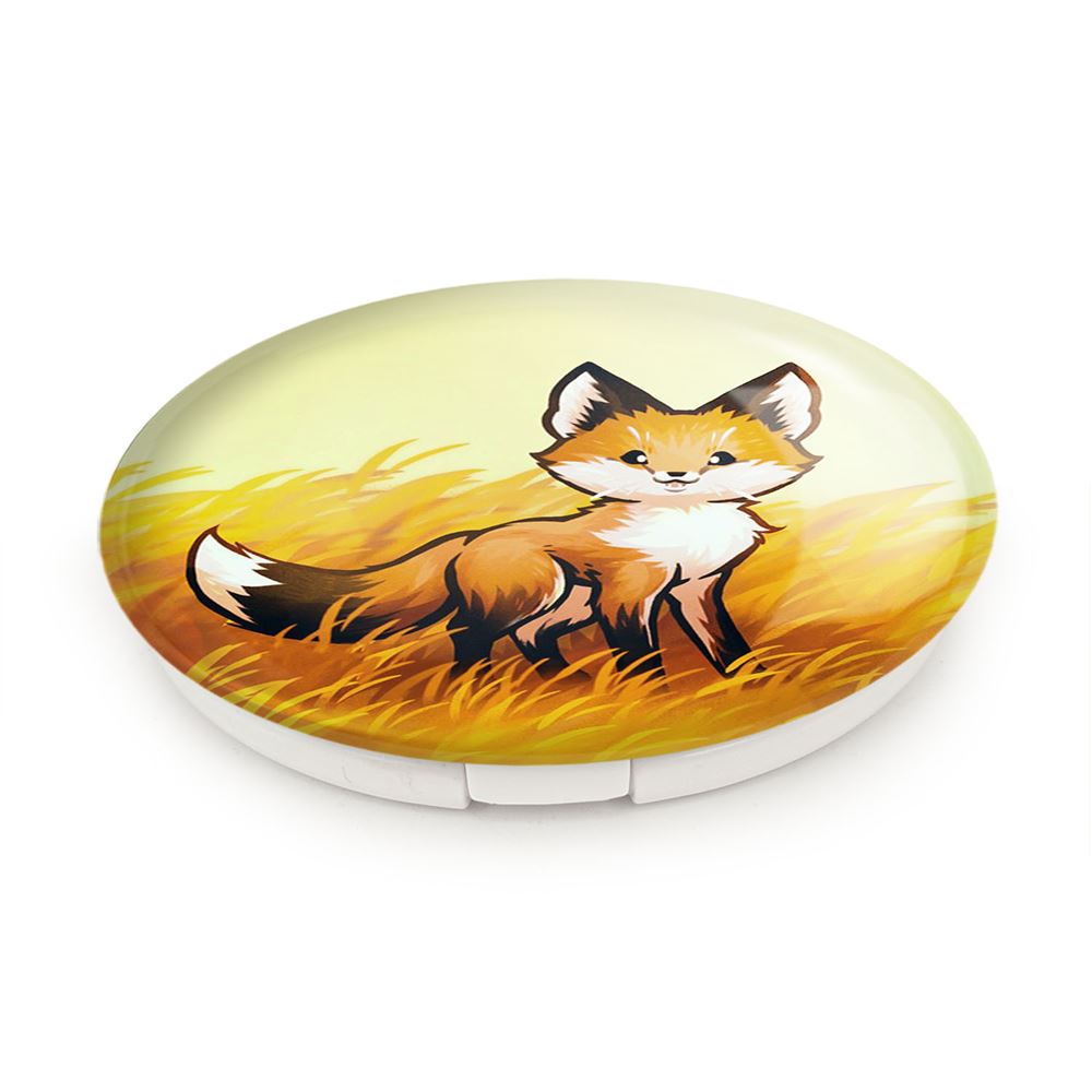 آینه های تاشو روباه حیوانات بامزه خندالو، از جنس پلاستیک فشرده ABS تولید شده و به رنگ سفید می باشد. یکی از آینه ها ابعاد واقعی را نشان داده و دیگری با قابلیت بزرگنمایی، جزئیات را بهتر نمایش می دهد. ابعاد هر یک از آینه ها، دایره ای به قطر 7.5 سانت می باشد که نه خیلی بزرگ و غیر قابل استفاده در کیف آرایشی ست و نه خیلی کوچک که تصویر خاصی در آن مشاهده نشود. آینه تاشو روباه حیوانات بامزه سایزی استاندارد و کارآمد دارد و در هر کیفی جا میگیرد. چاپ طرح بوسیله چاپگرهای دیجیتال شش رنگ با شفافیت و کیفیتی مثال زدنی بر روی یک وجه از بدنه ی آینه انجام گرفته و با روکش لمینت حرارتی پوشیده شده که در مقابل آسیب و خط و خش مقاوم بوده و کیفیت بالایی دارد. درب آینه بوسیله قفل بدنه ی آن، باز نمی ماند و کاملا بسته می شود و مناسب قرار گیری در کیف لوازم آرایش و کیف های کوچک دستی نیز هست. آینه های تاشو روباه حیوانات بامزه خندالو با تنوع طرحی بسیار بالا، سلیقه هر نوع مخاطبی را تامین میکند.