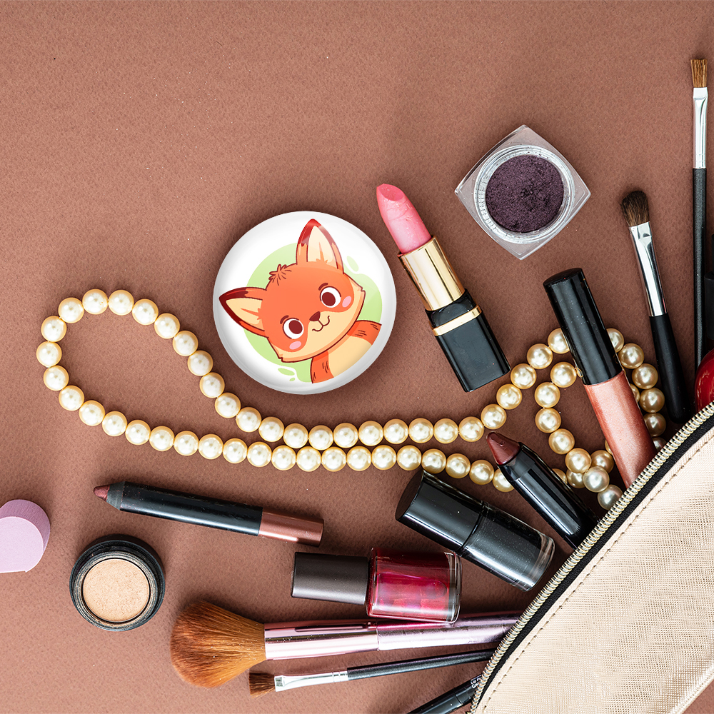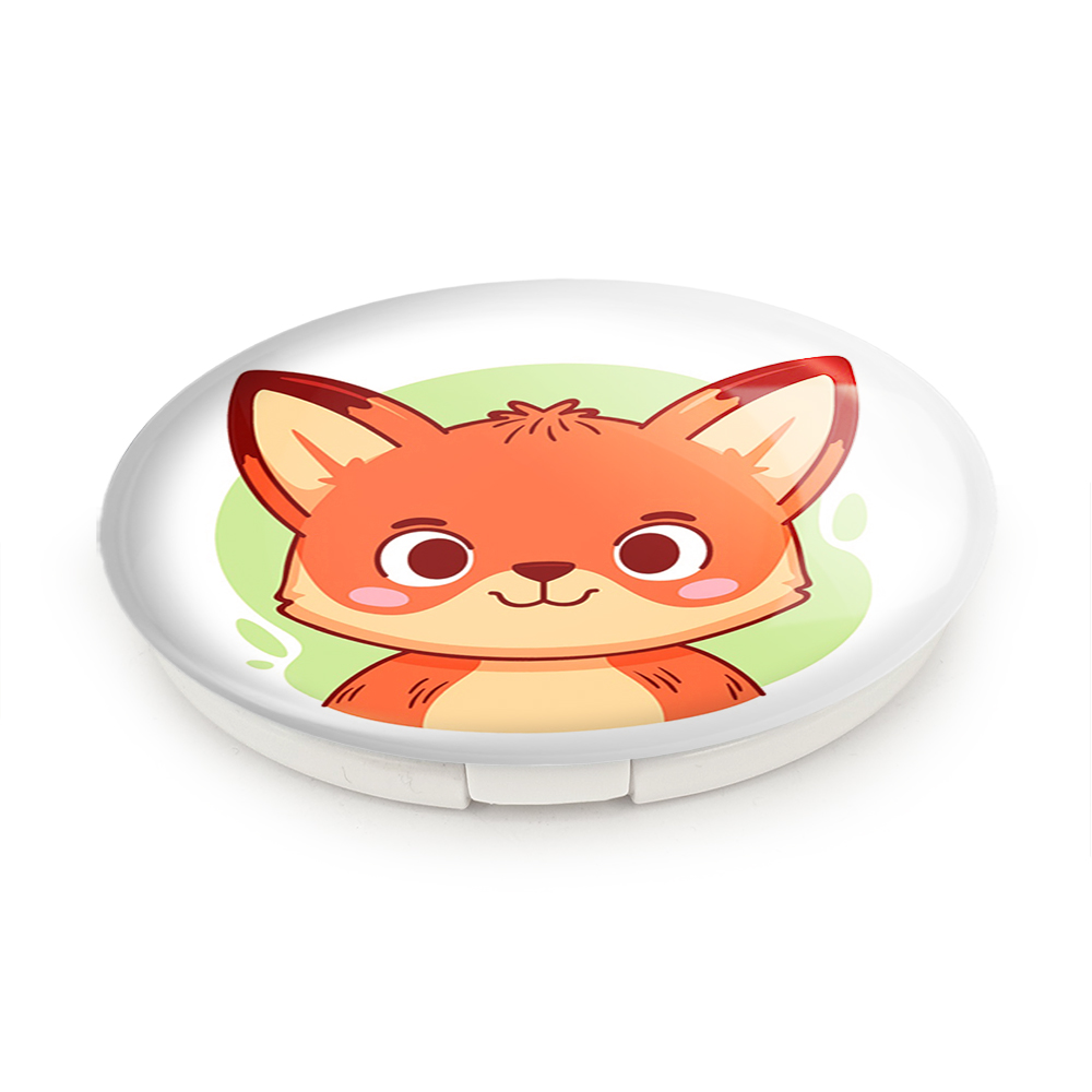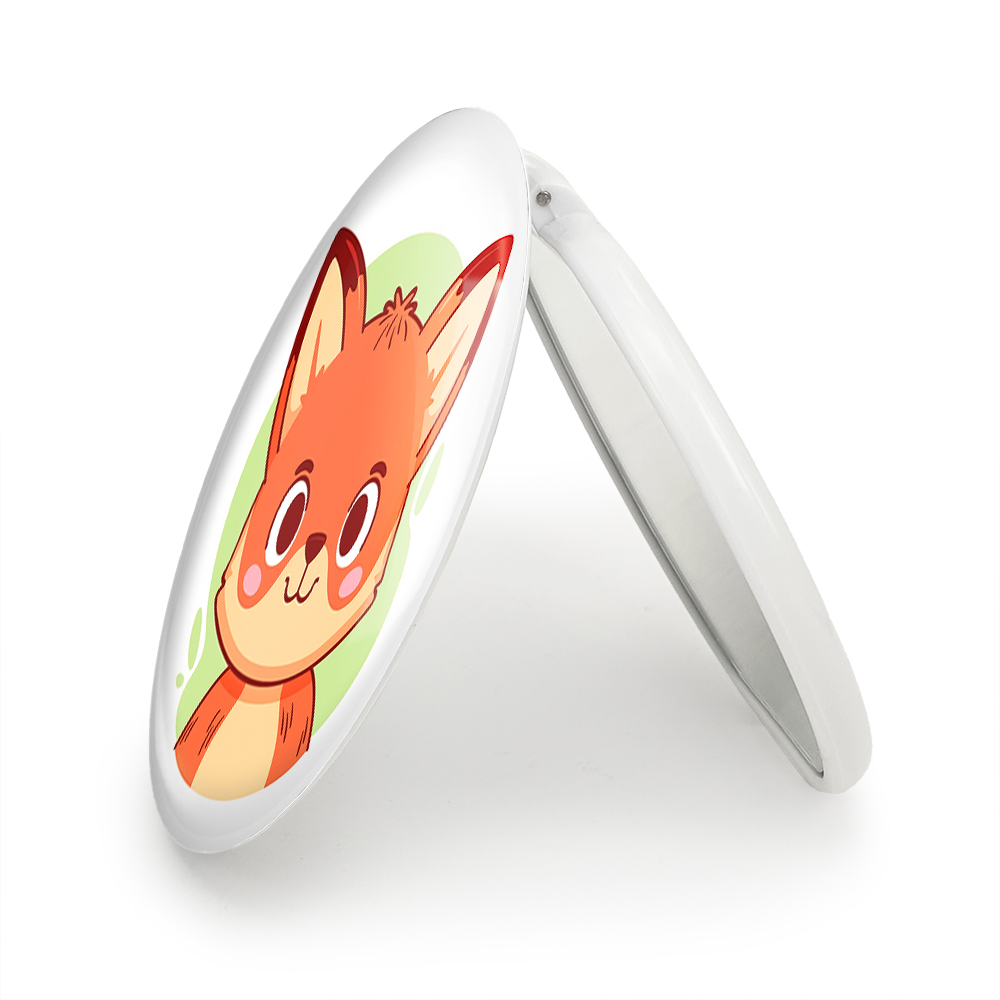 آینه های تاشو روباه حیوانات بامزه خندالو، از جنس پلاستیک فشرده ABS تولید شده و به رنگ سفید می باشد. یکی از آینه ها ابعاد واقعی را نشان داده و دیگری با قابلیت بزرگنمایی، جزئیات را بهتر نمایش می دهد. ابعاد هر یک از آینه ها، دایره ای به قطر 7.5 سانت می باشد که نه خیلی بزرگ و غیر قابل استفاده در کیف آرایشی ست و نه خیلی کوچک که تصویر خاصی در آن مشاهده نشود. آینه تاشو روباه حیوانات بامزه سایزی استاندارد و کارآمد دارد و در هر کیفی جا میگیرد. چاپ طرح بوسیله چاپگرهای دیجیتال شش رنگ با شفافیت و کیفیتی مثال زدنی بر روی یک وجه از بدنه ی آینه انجام گرفته و با روکش لمینت حرارتی پوشیده شده که در مقابل آسیب و خط و خش مقاوم بوده و کیفیت بالایی دارد. درب آینه بوسیله قفل بدنه ی آن، باز نمی ماند و کاملا بسته می شود و مناسب قرار گیری در کیف لوازم آرایش و کیف های کوچک دستی نیز هست. آینه های تاشو روباه حیوانات بامزه خندالو با تنوع طرحی بسیار بالا، سلیقه هر نوع مخاطبی را تامین میکند.