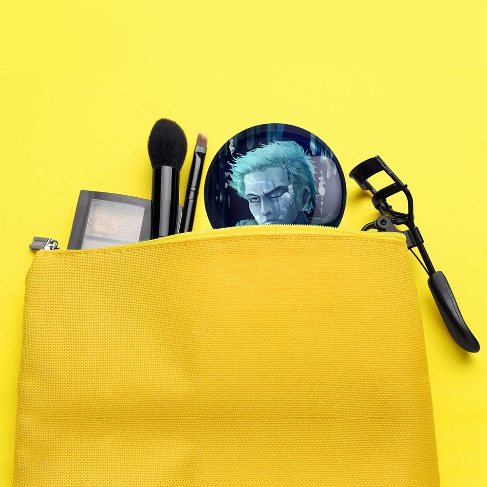 آینه های تاشو رورونا زورو انیمه وان پیس One Piece خندالو، از جنس پلاستیک فشرده ABS تولید شده و به رنگ سفید می باشد. یکی از آینه ها ابعاد واقعی را نشان داده و دیگری با قابلیت بزرگنمایی، جزئیات را بهتر نمایش می دهد. ابعاد هر یک از آینه ها، دایره ای به قطر 7.5 سانت می باشد که نه خیلی بزرگ و غیر قابل استفاده در کیف آرایشی ست و نه خیلی کوچک که تصویر خاصی در آن مشاهده نشود. آینه تاشو رورونا زورو انیمه وان پیس One Piece سایزی استاندارد و کارآمد دارد و در هر کیفی جا میگیرد. چاپ طرح بوسیله چاپگرهای دیجیتال شش رنگ با شفافیت و کیفیتی مثال زدنی بر روی یک وجه از بدنه ی آینه انجام گرفته و با روکش لمینت حرارتی پوشیده شده که در مقابل آسیب و خط و خش مقاوم بوده و کیفیت بالایی دارد. درب آینه بوسیله قفل بدنه ی آن، باز نمی ماند و کاملا بسته می شود و مناسب قرار گیری در کیف لوازم آرایش و کیف های کوچک دستی نیز هست. آینه های تاشو رورونا زورو انیمه وان پیس One Piece خندالو با تنوع طرحی بسیار بالا، سلیقه هر نوع مخاطبی را تامین میکند.