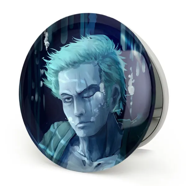 آینه های تاشو رورونا زورو انیمه وان پیس One Piece خندالو، از جنس پلاستیک فشرده ABS تولید شده و به رنگ سفید می باشد. یکی از آینه ها ابعاد واقعی را نشان داده و دیگری با قابلیت بزرگنمایی، جزئیات را بهتر نمایش می دهد. ابعاد هر یک از آینه ها، دایره ای به قطر 7.5 سانت می باشد که نه خیلی بزرگ و غیر قابل استفاده در کیف آرایشی ست و نه خیلی کوچک که تصویر خاصی در آن مشاهده نشود. آینه تاشو رورونا زورو انیمه وان پیس One Piece سایزی استاندارد و کارآمد دارد و در هر کیفی جا میگیرد. چاپ طرح بوسیله چاپگرهای دیجیتال شش رنگ با شفافیت و کیفیتی مثال زدنی بر روی یک وجه از بدنه ی آینه انجام گرفته و با روکش لمینت حرارتی پوشیده شده که در مقابل آسیب و خط و خش مقاوم بوده و کیفیت بالایی دارد. درب آینه بوسیله قفل بدنه ی آن، باز نمی ماند و کاملا بسته می شود و مناسب قرار گیری در کیف لوازم آرایش و کیف های کوچک دستی نیز هست. آینه های تاشو رورونا زورو انیمه وان پیس One Piece خندالو با تنوع طرحی بسیار بالا، سلیقه هر نوع مخاطبی را تامین میکند.