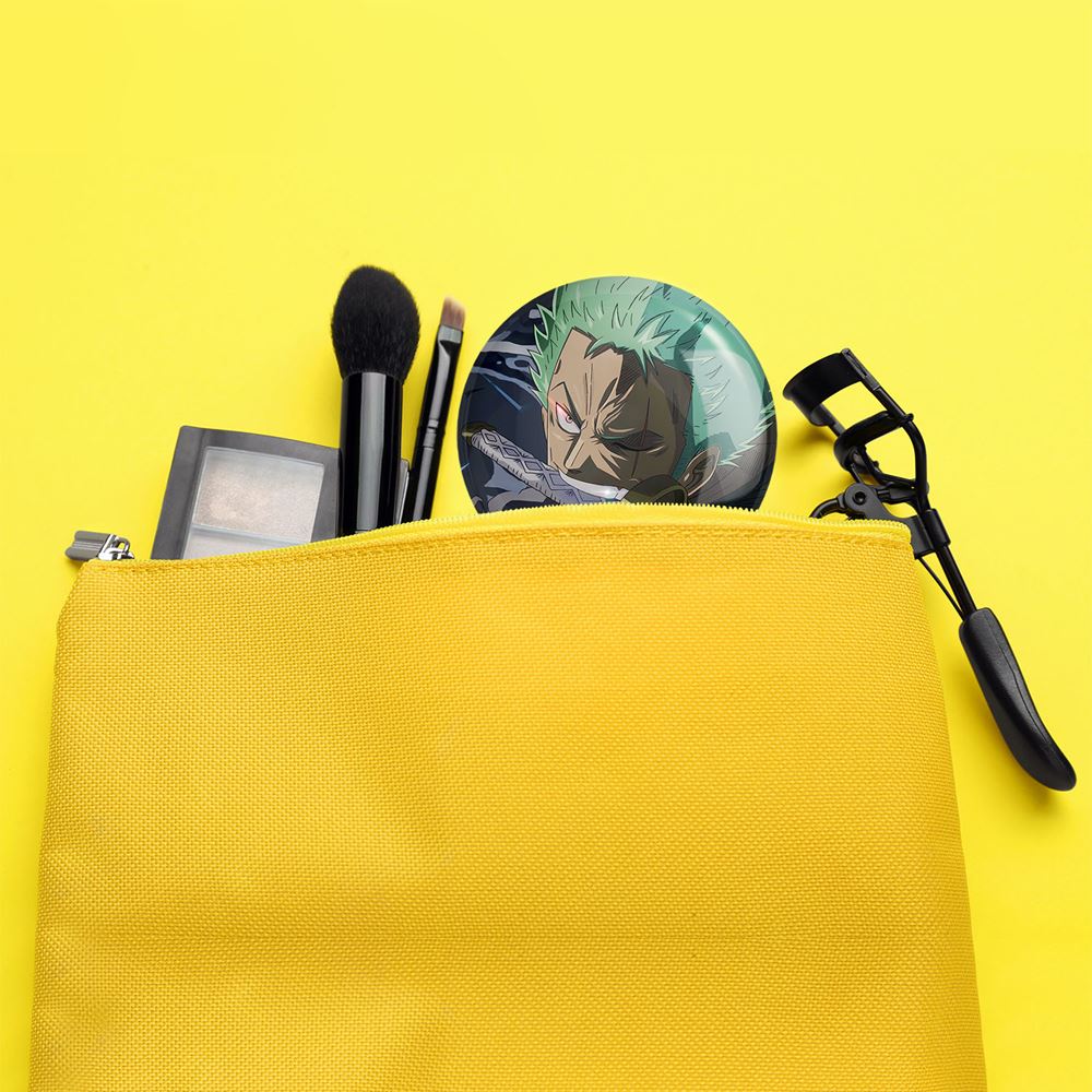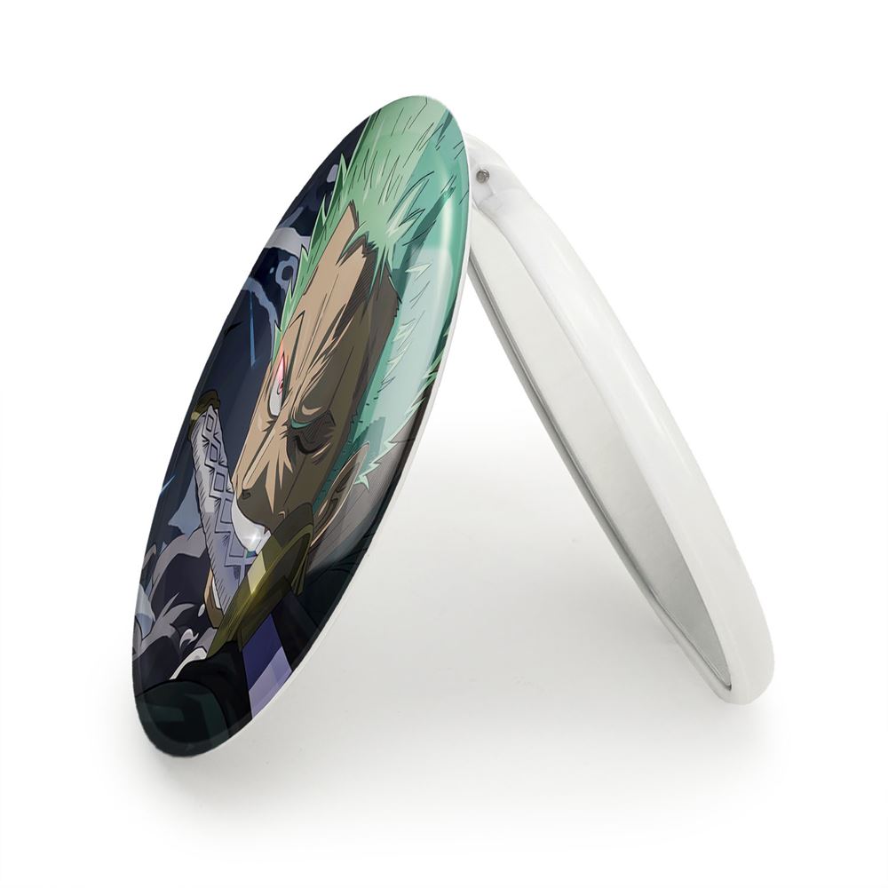 آینه های تاشو رورونا زورو انیمه وان پیس One Piece خندالو، از جنس پلاستیک فشرده ABS تولید شده و به رنگ سفید می باشد. یکی از آینه ها ابعاد واقعی را نشان داده و دیگری با قابلیت بزرگنمایی، جزئیات را بهتر نمایش می دهد. ابعاد هر یک از آینه ها، دایره ای به قطر 7.5 سانت می باشد که نه خیلی بزرگ و غیر قابل استفاده در کیف آرایشی ست و نه خیلی کوچک که تصویر خاصی در آن مشاهده نشود. آینه تاشو رورونا زورو انیمه وان پیس One Piece سایزی استاندارد و کارآمد دارد و در هر کیفی جا میگیرد. چاپ طرح بوسیله چاپگرهای دیجیتال شش رنگ با شفافیت و کیفیتی مثال زدنی بر روی یک وجه از بدنه ی آینه انجام گرفته و با روکش لمینت حرارتی پوشیده شده که در مقابل آسیب و خط و خش مقاوم بوده و کیفیت بالایی دارد. درب آینه بوسیله قفل بدنه ی آن، باز نمی ماند و کاملا بسته می شود و مناسب قرار گیری در کیف لوازم آرایش و کیف های کوچک دستی نیز هست. آینه های تاشو رورونا زورو انیمه وان پیس One Piece خندالو با تنوع طرحی بسیار بالا، سلیقه هر نوع مخاطبی را تامین میکند.