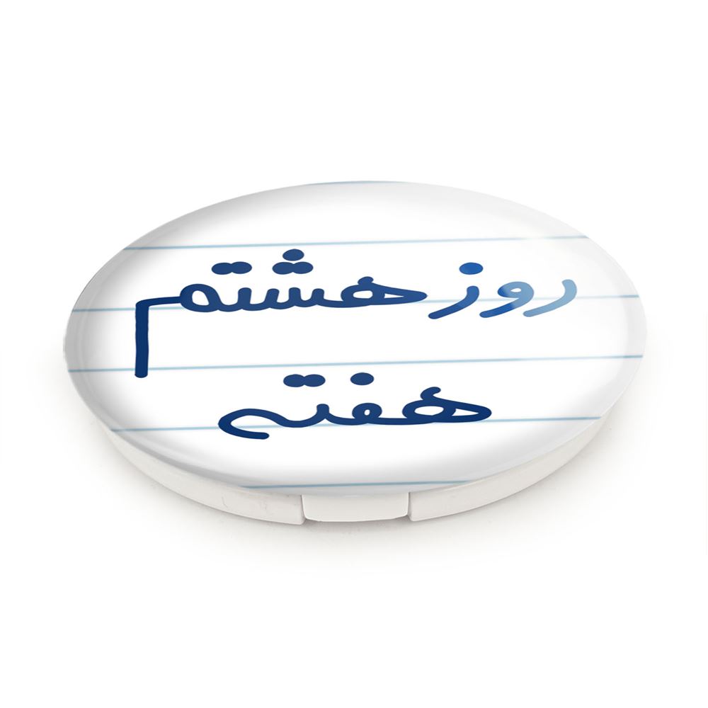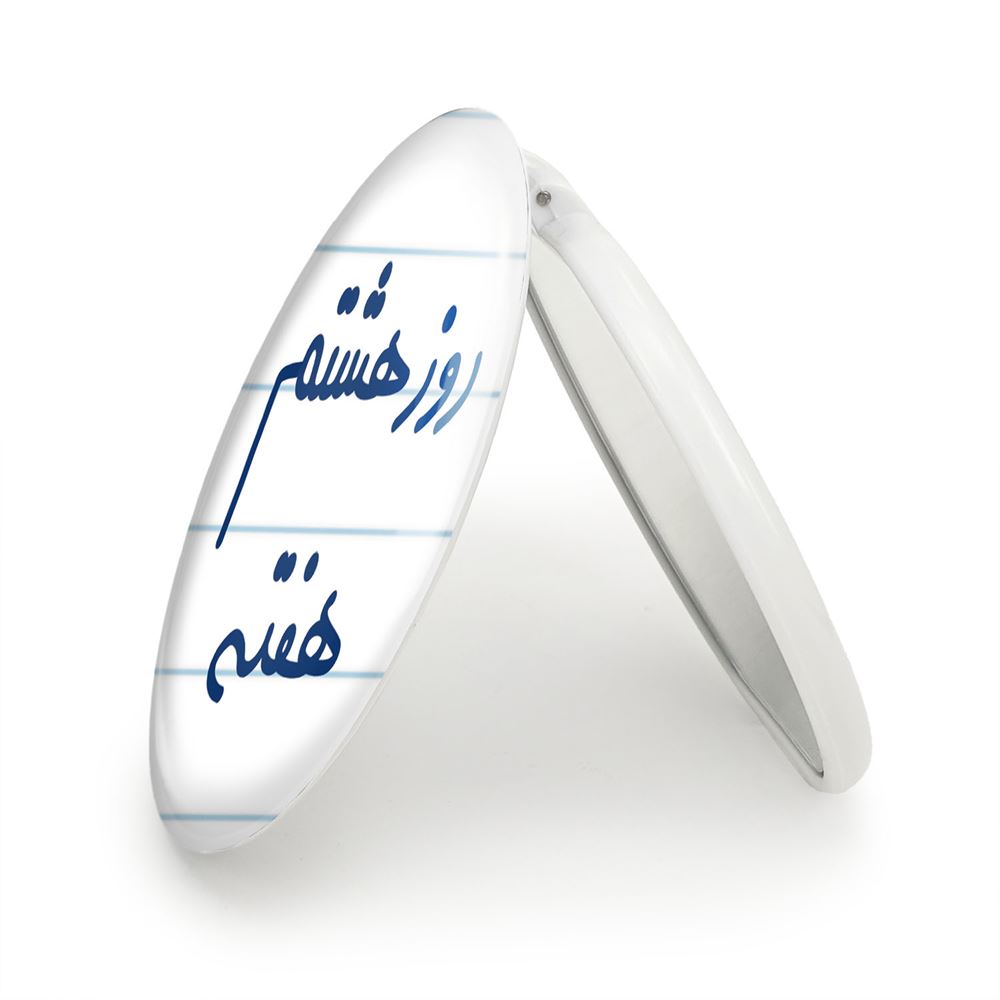 آینه های تاشو روز هشتم هفته خندالو، از جنس پلاستیک فشرده ABS تولید شده و به رنگ سفید می باشد. یکی از آینه ها ابعاد واقعی را نشان داده و دیگری با قابلیت بزرگنمایی، جزئیات را بهتر نمایش می دهد. ابعاد هر یک از آینه ها، دایره ای به قطر 7.5 سانت می باشد که نه خیلی بزرگ و غیر قابل استفاده در کیف آرایشی ست و نه خیلی کوچک که تصویر خاصی در آن مشاهده نشود. آینه تاشو روز هشتم هفته سایزی استاندارد و کارآمد دارد و در هر کیفی جا میگیرد. چاپ طرح بوسیله چاپگرهای دیجیتال شش رنگ با شفافیت و کیفیتی مثال زدنی بر روی یک وجه از بدنه ی آینه انجام گرفته و با روکش لمینت حرارتی پوشیده شده که در مقابل آسیب و خط و خش مقاوم بوده و کیفیت بالایی دارد. درب آینه بوسیله قفل بدنه ی آن، باز نمی ماند و کاملا بسته می شود و مناسب قرار گیری در کیف لوازم آرایش و کیف های کوچک دستی نیز هست. آینه های تاشو روز هشتم هفته خندالو با تنوع طرحی بسیار بالا، سلیقه هر نوع مخاطبی را تامین میکند.