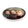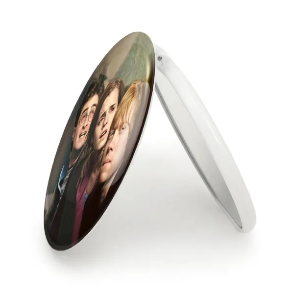 آینه های تاشو رون و هرمیون و هری پاتر Harry Potter خندالو، از جنس پلاستیک فشرده ABS تولید شده و به رنگ سفید می باشد. یکی از آینه ها ابعاد واقعی را نشان داده و دیگری با قابلیت بزرگنمایی، جزئیات را بهتر نمایش می دهد. ابعاد هر یک از آینه ها، دایره ای به قطر 7.5 سانت می باشد که نه خیلی بزرگ و غیر قابل استفاده در کیف آرایشی ست و نه خیلی کوچک که تصویر خاصی در آن مشاهده نشود. آینه تاشو رون و هرمیون و هری پاتر Harry Potter سایزی استاندارد و کارآمد دارد و در هر کیفی جا میگیرد. چاپ طرح بوسیله چاپگرهای دیجیتال شش رنگ با شفافیت و کیفیتی مثال زدنی بر روی یک وجه از بدنه ی آینه انجام گرفته و با روکش لمینت حرارتی پوشیده شده که در مقابل آسیب و خط و خش مقاوم بوده و کیفیت بالایی دارد. درب آینه بوسیله قفل بدنه ی آن، باز نمی ماند و کاملا بسته می شود و مناسب قرار گیری در کیف لوازم آرایش و کیف های کوچک دستی نیز هست. آینه های تاشو رون و هرمیون و هری پاتر Harry Potter خندالو با تنوع طرحی بسیار بالا، سلیقه هر نوع مخاطبی را تامین میکند.