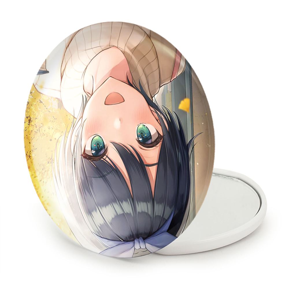 آینه های تاشو رکا انیمه کانوجواوکاری خندالو، از جنس پلاستیک فشرده ABS تولید شده و به رنگ سفید می باشد. یکی از آینه ها ابعاد واقعی را نشان داده و دیگری با قابلیت بزرگنمایی، جزئیات را بهتر نمایش می دهد. ابعاد هر یک از آینه ها، دایره ای به قطر 7.5 سانت می باشد که نه خیلی بزرگ و غیر قابل استفاده در کیف آرایشی ست و نه خیلی کوچک که تصویر خاصی در آن مشاهده نشود. آینه تاشو رکا انیمه کانوجواوکاری سایزی استاندارد و کارآمد دارد و در هر کیفی جا میگیرد. چاپ طرح بوسیله چاپگرهای دیجیتال شش رنگ با شفافیت و کیفیتی مثال زدنی بر روی یک وجه از بدنه ی آینه انجام گرفته و با روکش لمینت حرارتی پوشیده شده که در مقابل آسیب و خط و خش مقاوم بوده و کیفیت بالایی دارد. درب آینه بوسیله قفل بدنه ی آن، باز نمی ماند و کاملا بسته می شود و مناسب قرار گیری در کیف لوازم آرایش و کیف های کوچک دستی نیز هست. آینه های تاشو رکا انیمه کانوجواوکاری خندالو با تنوع طرحی بسیار بالا، سلیقه هر نوع مخاطبی را تامین میکند.