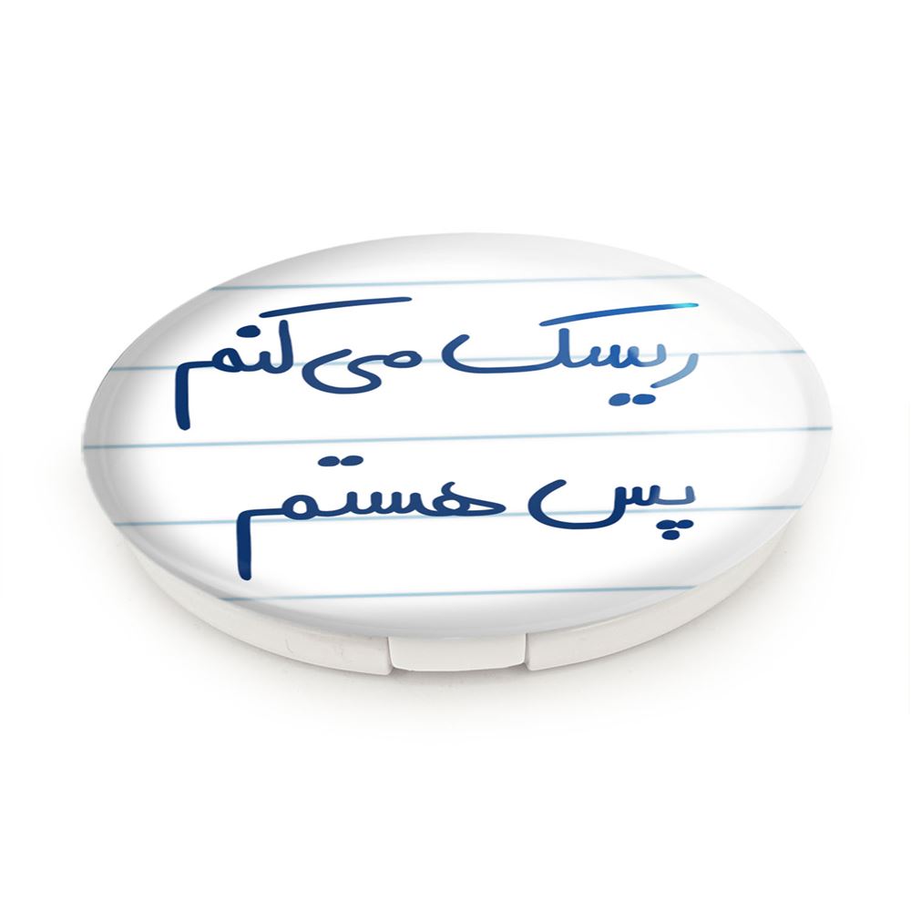 آینه های تاشو ریسک می کنم پس هستم خندالو، از جنس پلاستیک فشرده ABS تولید شده و به رنگ سفید می باشد. یکی از آینه ها ابعاد واقعی را نشان داده و دیگری با قابلیت بزرگنمایی، جزئیات را بهتر نمایش می دهد. ابعاد هر یک از آینه ها، دایره ای به قطر 7.5 سانت می باشد که نه خیلی بزرگ و غیر قابل استفاده در کیف آرایشی ست و نه خیلی کوچک که تصویر خاصی در آن مشاهده نشود. آینه تاشو ریسک می کنم پس هستم سایزی استاندارد و کارآمد دارد و در هر کیفی جا میگیرد. چاپ طرح بوسیله چاپگرهای دیجیتال شش رنگ با شفافیت و کیفیتی مثال زدنی بر روی یک وجه از بدنه ی آینه انجام گرفته و با روکش لمینت حرارتی پوشیده شده که در مقابل آسیب و خط و خش مقاوم بوده و کیفیت بالایی دارد. درب آینه بوسیله قفل بدنه ی آن، باز نمی ماند و کاملا بسته می شود و مناسب قرار گیری در کیف لوازم آرایش و کیف های کوچک دستی نیز هست. آینه های تاشو ریسک می کنم پس هستم خندالو با تنوع طرحی بسیار بالا، سلیقه هر نوع مخاطبی را تامین میکند.