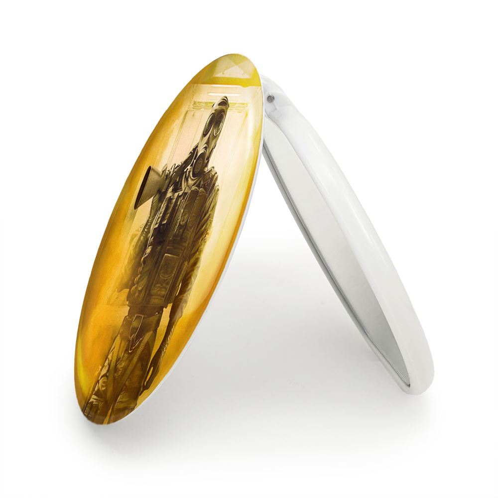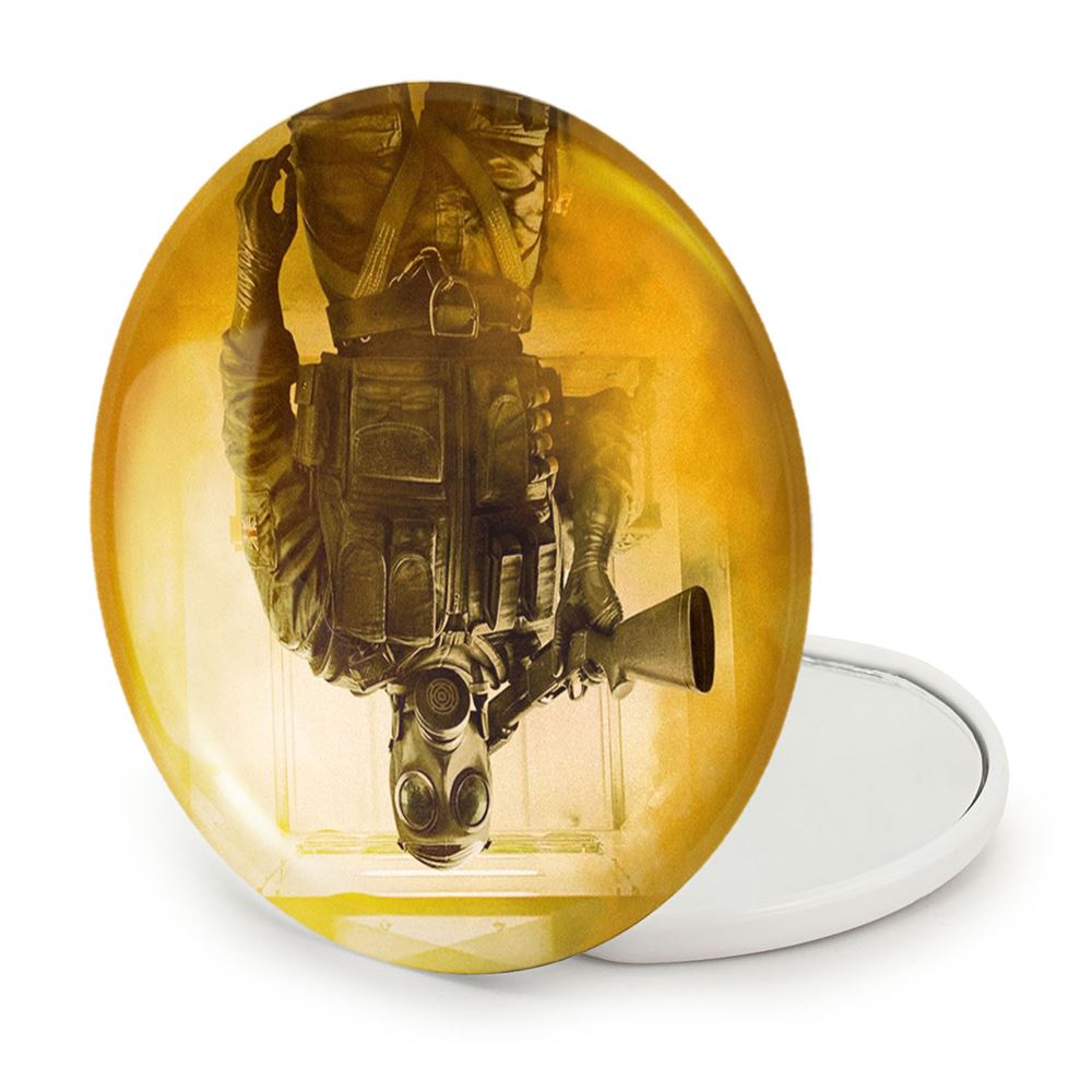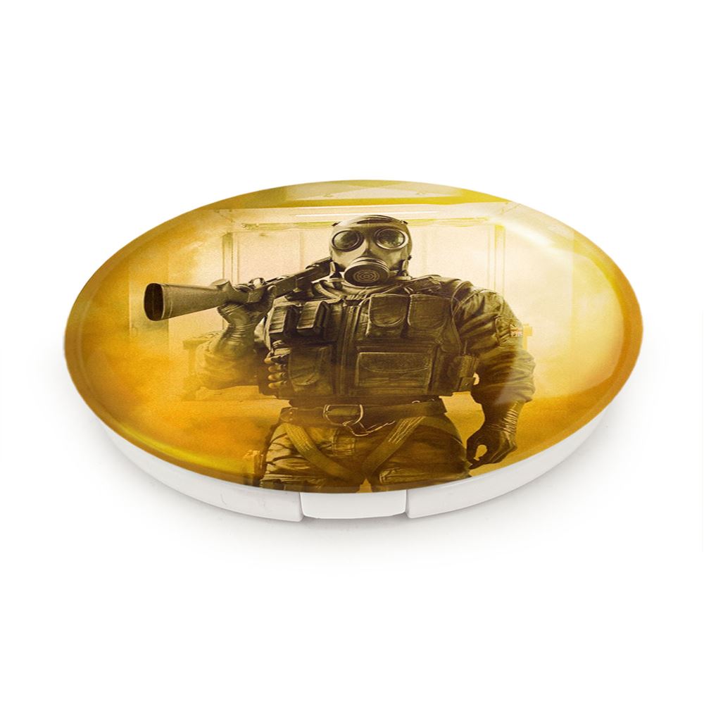 آینه های تاشو رینبو سیکس Rainbow Six خندالو، از جنس پلاستیک فشرده ABS تولید شده و به رنگ سفید می باشد. یکی از آینه ها ابعاد واقعی را نشان داده و دیگری با قابلیت بزرگنمایی، جزئیات را بهتر نمایش می دهد. ابعاد هر یک از آینه ها، دایره ای به قطر 7.5 سانت می باشد که نه خیلی بزرگ و غیر قابل استفاده در کیف آرایشی ست و نه خیلی کوچک که تصویر خاصی در آن مشاهده نشود. آینه تاشو رینبو سیکس Rainbow Six سایزی استاندارد و کارآمد دارد و در هر کیفی جا میگیرد. چاپ طرح بوسیله چاپگرهای دیجیتال شش رنگ با شفافیت و کیفیتی مثال زدنی بر روی یک وجه از بدنه ی آینه انجام گرفته و با روکش لمینت حرارتی پوشیده شده که در مقابل آسیب و خط و خش مقاوم بوده و کیفیت بالایی دارد. درب آینه بوسیله قفل بدنه ی آن، باز نمی ماند و کاملا بسته می شود و مناسب قرار گیری در کیف لوازم آرایش و کیف های کوچک دستی نیز هست. آینه های تاشو رینبو سیکس Rainbow Six خندالو با تنوع طرحی بسیار بالا، سلیقه هر نوع مخاطبی را تامین میکند.