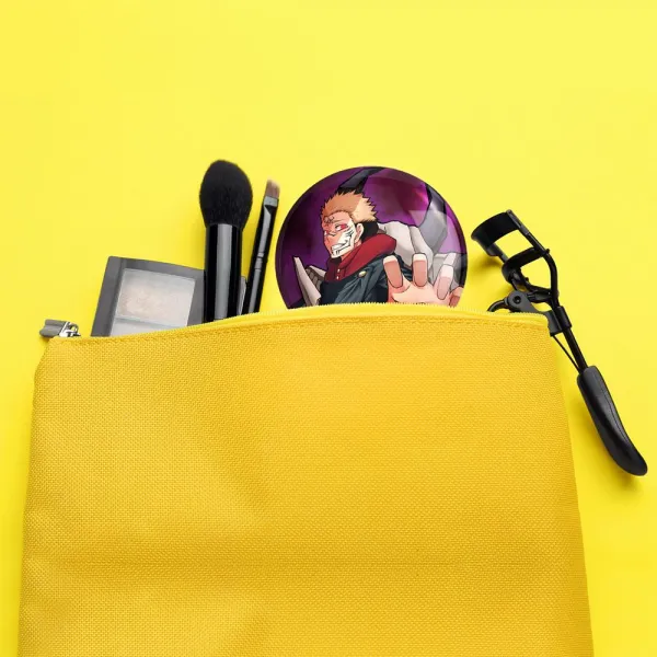 آینه های تاشو ریومن سکونا انیمه جوجوتسو کایزن خندالو، از جنس پلاستیک فشرده ABS تولید شده و به رنگ سفید می باشد. یکی از آینه ها ابعاد واقعی را نشان داده و دیگری با قابلیت بزرگنمایی، جزئیات را بهتر نمایش می دهد. ابعاد هر یک از آینه ها، دایره ای به قطر 7.5 سانت می باشد که نه خیلی بزرگ و غیر قابل استفاده در کیف آرایشی ست و نه خیلی کوچک که تصویر خاصی در آن مشاهده نشود. آینه تاشو ریومن سکونا انیمه جوجوتسو کایزن سایزی استاندارد و کارآمد دارد و در هر کیفی جا میگیرد. چاپ طرح بوسیله چاپگرهای دیجیتال شش رنگ با شفافیت و کیفیتی مثال زدنی بر روی یک وجه از بدنه ی آینه انجام گرفته و با روکش لمینت حرارتی پوشیده شده که در مقابل آسیب و خط و خش مقاوم بوده و کیفیت بالایی دارد. درب آینه بوسیله قفل بدنه ی آن، باز نمی ماند و کاملا بسته می شود و مناسب قرار گیری در کیف لوازم آرایش و کیف های کوچک دستی نیز هست. آینه های تاشو ریومن سکونا انیمه جوجوتسو کایزن خندالو با تنوع طرحی بسیار بالا، سلیقه هر نوع مخاطبی را تامین میکند.