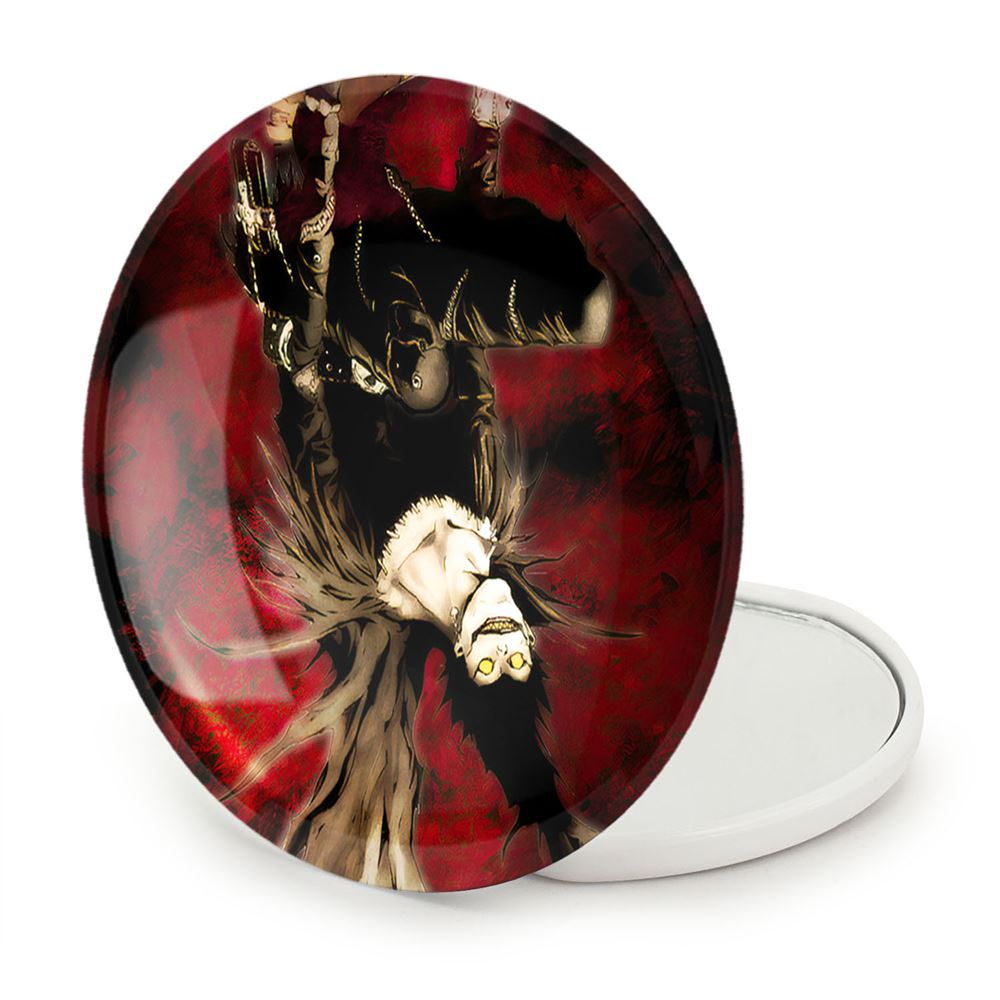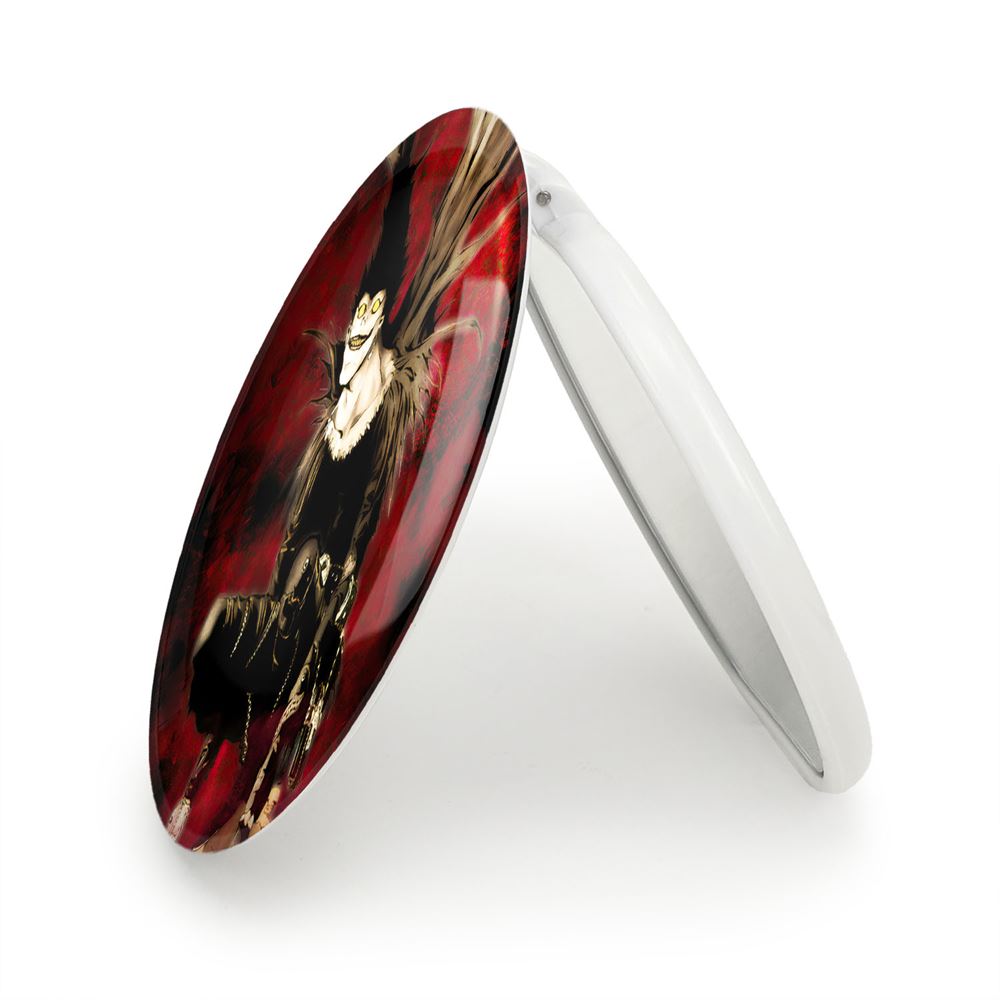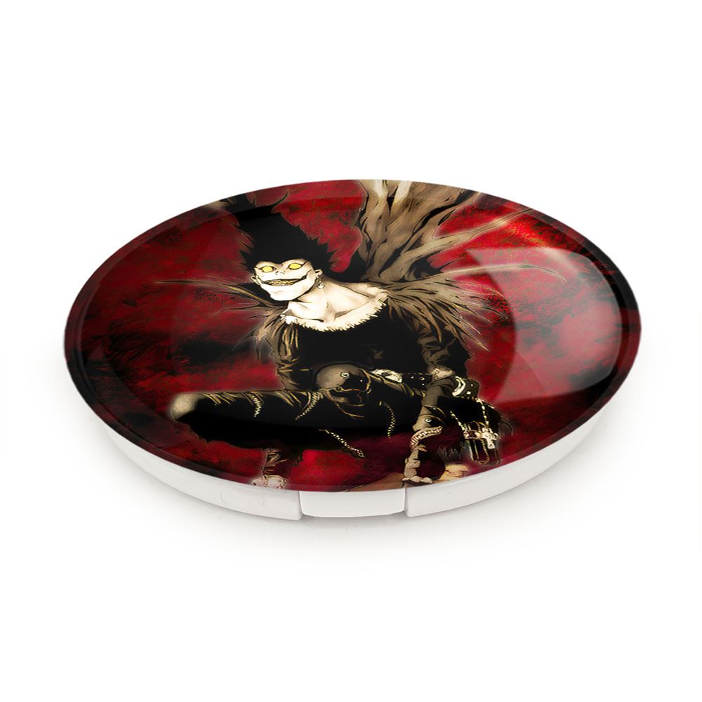 آینه های تاشو ریوک شینیگامی انیمه دفترچه مرگ Death Note خندالو، از جنس پلاستیک فشرده ABS تولید شده و به رنگ سفید می باشد. یکی از آینه ها ابعاد واقعی را نشان داده و دیگری با قابلیت بزرگنمایی، جزئیات را بهتر نمایش می دهد. ابعاد هر یک از آینه ها، دایره ای به قطر 7.5 سانت می باشد که نه خیلی بزرگ و غیر قابل استفاده در کیف آرایشی ست و نه خیلی کوچک که تصویر خاصی در آن مشاهده نشود. آینه تاشو ریوک شینیگامی انیمه دفترچه مرگ Death Note سایزی استاندارد و کارآمد دارد و در هر کیفی جا میگیرد. چاپ طرح بوسیله چاپگرهای دیجیتال شش رنگ با شفافیت و کیفیتی مثال زدنی بر روی یک وجه از بدنه ی آینه انجام گرفته و با روکش لمینت حرارتی پوشیده شده که در مقابل آسیب و خط و خش مقاوم بوده و کیفیت بالایی دارد. درب آینه بوسیله قفل بدنه ی آن، باز نمی ماند و کاملا بسته می شود و مناسب قرار گیری در کیف لوازم آرایش و کیف های کوچک دستی نیز هست. آینه های تاشو ریوک شینیگامی انیمه دفترچه مرگ Death Note خندالو با تنوع طرحی بسیار بالا، سلیقه هر نوع مخاطبی را تامین میکند.