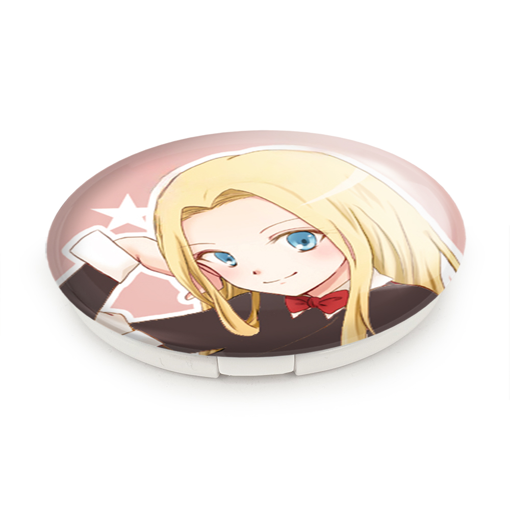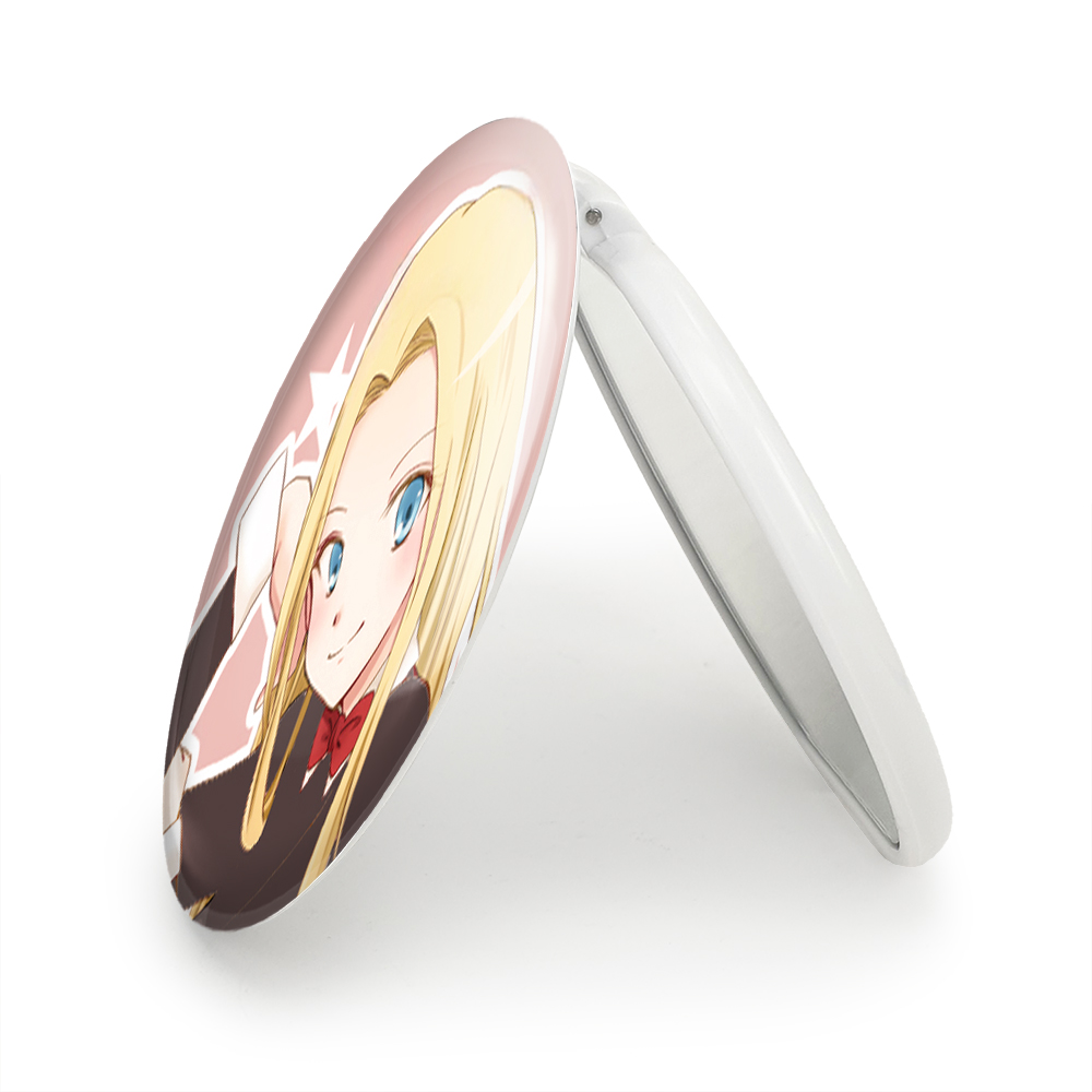 آینه های تاشو ریو انیمه کلاس آدمکشی خندالو، از جنس پلاستیک فشرده ABS تولید شده و به رنگ سفید می باشد. یکی از آینه ها ابعاد واقعی را نشان داده و دیگری با قابلیت بزرگنمایی، جزئیات را بهتر نمایش می دهد. ابعاد هر یک از آینه ها، دایره ای به قطر 7.5 سانت می باشد که نه خیلی بزرگ و غیر قابل استفاده در کیف آرایشی ست و نه خیلی کوچک که تصویر خاصی در آن مشاهده نشود. آینه تاشو ریو انیمه کلاس آدمکشی سایزی استاندارد و کارآمد دارد و در هر کیفی جا میگیرد. چاپ طرح بوسیله چاپگرهای دیجیتال شش رنگ با شفافیت و کیفیتی مثال زدنی بر روی یک وجه از بدنه ی آینه انجام گرفته و با روکش لمینت حرارتی پوشیده شده که در مقابل آسیب و خط و خش مقاوم بوده و کیفیت بالایی دارد. درب آینه بوسیله قفل بدنه ی آن، باز نمی ماند و کاملا بسته می شود و مناسب قرار گیری در کیف لوازم آرایش و کیف های کوچک دستی نیز هست. آینه های تاشو ریو انیمه کلاس آدمکشی خندالو با تنوع طرحی بسیار بالا، سلیقه هر نوع مخاطبی را تامین میکند.