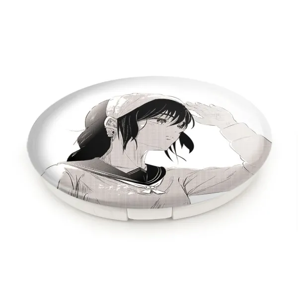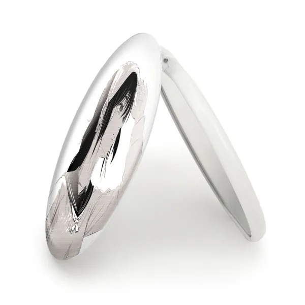 آینه های تاشو ریکو آمانای انیمه جوجوتسو کایزن Jujutsu Kaisen خندالو، از جنس پلاستیک فشرده ABS تولید شده و به رنگ سفید می باشد. یکی از آینه ها ابعاد واقعی را نشان داده و دیگری با قابلیت بزرگنمایی، جزئیات را بهتر نمایش می دهد. ابعاد هر یک از آینه ها، دایره ای به قطر 7.5 سانت می باشد که نه خیلی بزرگ و غیر قابل استفاده در کیف آرایشی ست و نه خیلی کوچک که تصویر خاصی در آن مشاهده نشود. آینه تاشو ریکو آمانای انیمه جوجوتسو کایزن Jujutsu Kaisen سایزی استاندارد و کارآمد دارد و در هر کیفی جا میگیرد. چاپ طرح بوسیله چاپگرهای دیجیتال شش رنگ با شفافیت و کیفیتی مثال زدنی بر روی یک وجه از بدنه ی آینه انجام گرفته و با روکش لمینت حرارتی پوشیده شده که در مقابل آسیب و خط و خش مقاوم بوده و کیفیت بالایی دارد. درب آینه بوسیله قفل بدنه ی آن، باز نمی ماند و کاملا بسته می شود و مناسب قرار گیری در کیف لوازم آرایش و کیف های کوچک دستی نیز هست. آینه های تاشو ریکو آمانای انیمه جوجوتسو کایزن Jujutsu Kaisen خندالو با تنوع طرحی بسیار بالا، سلیقه هر نوع مخاطبی را تامین میکند.