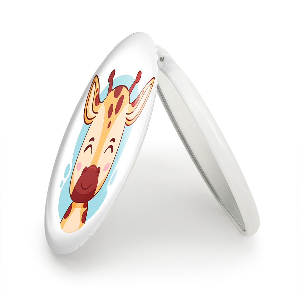 آینه های تاشو زرافه حیوانات بامزه خندالو، از جنس پلاستیک فشرده ABS تولید شده و به رنگ سفید می باشد. یکی از آینه ها ابعاد واقعی را نشان داده و دیگری با قابلیت بزرگنمایی، جزئیات را بهتر نمایش می دهد. ابعاد هر یک از آینه ها، دایره ای به قطر 7.5 سانت می باشد که نه خیلی بزرگ و غیر قابل استفاده در کیف آرایشی ست و نه خیلی کوچک که تصویر خاصی در آن مشاهده نشود. آینه تاشو زرافه حیوانات بامزه سایزی استاندارد و کارآمد دارد و در هر کیفی جا میگیرد. چاپ طرح بوسیله چاپگرهای دیجیتال شش رنگ با شفافیت و کیفیتی مثال زدنی بر روی یک وجه از بدنه ی آینه انجام گرفته و با روکش لمینت حرارتی پوشیده شده که در مقابل آسیب و خط و خش مقاوم بوده و کیفیت بالایی دارد. درب آینه بوسیله قفل بدنه ی آن، باز نمی ماند و کاملا بسته می شود و مناسب قرار گیری در کیف لوازم آرایش و کیف های کوچک دستی نیز هست. آینه های تاشو زرافه حیوانات بامزه خندالو با تنوع طرحی بسیار بالا، سلیقه هر نوع مخاطبی را تامین میکند.