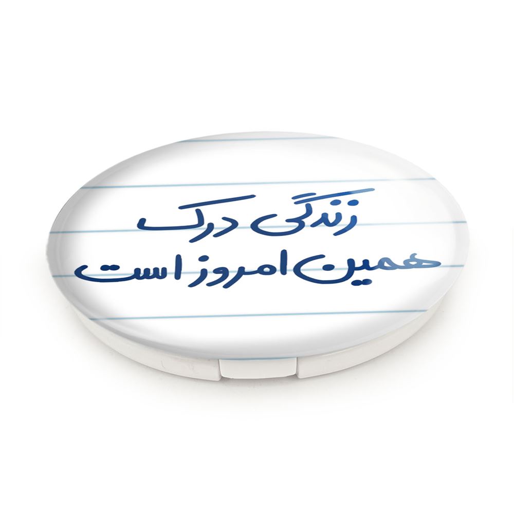 آینه های تاشو زندگی درک همین امروز است خندالو، از جنس پلاستیک فشرده ABS تولید شده و به رنگ سفید می باشد. یکی از آینه ها ابعاد واقعی را نشان داده و دیگری با قابلیت بزرگنمایی، جزئیات را بهتر نمایش می دهد. ابعاد هر یک از آینه ها، دایره ای به قطر 7.5 سانت می باشد که نه خیلی بزرگ و غیر قابل استفاده در کیف آرایشی ست و نه خیلی کوچک که تصویر خاصی در آن مشاهده نشود. آینه تاشو زندگی درک همین امروز است سایزی استاندارد و کارآمد دارد و در هر کیفی جا میگیرد. چاپ طرح بوسیله چاپگرهای دیجیتال شش رنگ با شفافیت و کیفیتی مثال زدنی بر روی یک وجه از بدنه ی آینه انجام گرفته و با روکش لمینت حرارتی پوشیده شده که در مقابل آسیب و خط و خش مقاوم بوده و کیفیت بالایی دارد. درب آینه بوسیله قفل بدنه ی آن، باز نمی ماند و کاملا بسته می شود و مناسب قرار گیری در کیف لوازم آرایش و کیف های کوچک دستی نیز هست. آینه های تاشو زندگی درک همین امروز است خندالو با تنوع طرحی بسیار بالا، سلیقه هر نوع مخاطبی را تامین میکند.
