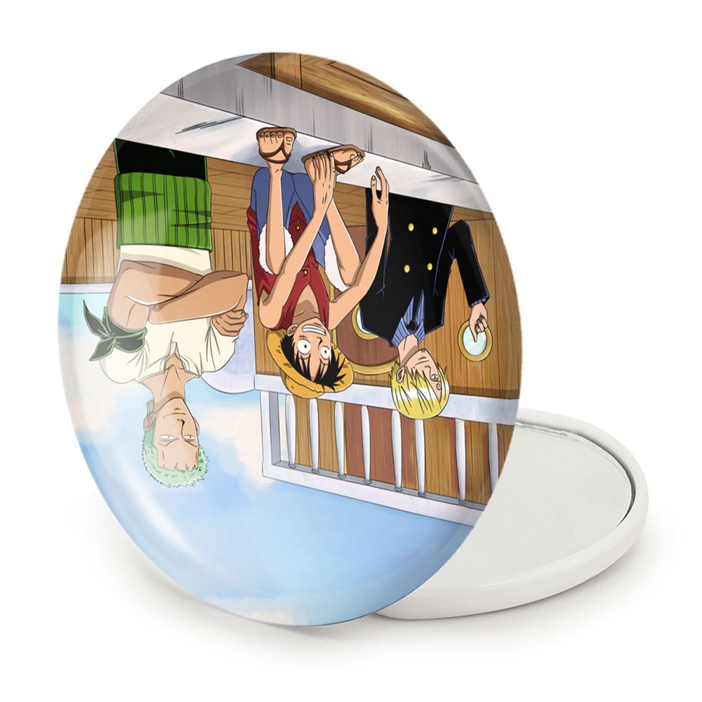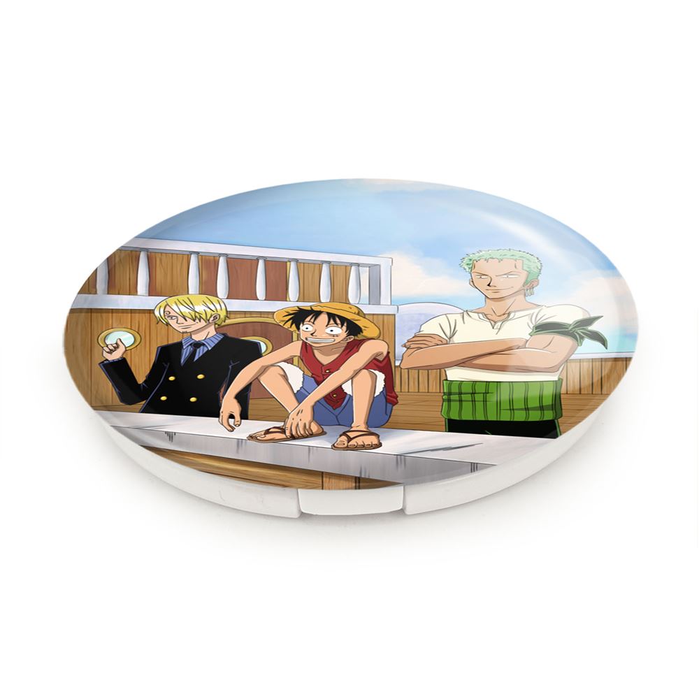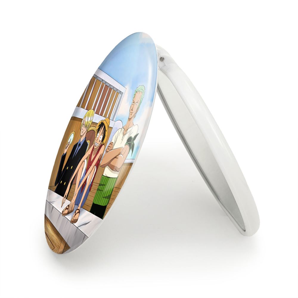آینه های تاشو زورو و لوفی و سانجی انیمه وان پیس One Piece خندالو، از جنس پلاستیک فشرده ABS تولید شده و به رنگ سفید می باشد. یکی از آینه ها ابعاد واقعی را نشان داده و دیگری با قابلیت بزرگنمایی، جزئیات را بهتر نمایش می دهد. ابعاد هر یک از آینه ها، دایره ای به قطر 7.5 سانت می باشد که نه خیلی بزرگ و غیر قابل استفاده در کیف آرایشی ست و نه خیلی کوچک که تصویر خاصی در آن مشاهده نشود. آینه تاشو زورو و لوفی و سانجی انیمه وان پیس One Piece سایزی استاندارد و کارآمد دارد و در هر کیفی جا میگیرد. چاپ طرح بوسیله چاپگرهای دیجیتال شش رنگ با شفافیت و کیفیتی مثال زدنی بر روی یک وجه از بدنه ی آینه انجام گرفته و با روکش لمینت حرارتی پوشیده شده که در مقابل آسیب و خط و خش مقاوم بوده و کیفیت بالایی دارد. درب آینه بوسیله قفل بدنه ی آن، باز نمی ماند و کاملا بسته می شود و مناسب قرار گیری در کیف لوازم آرایش و کیف های کوچک دستی نیز هست. آینه های تاشو زورو و لوفی و سانجی انیمه وان پیس One Piece خندالو با تنوع طرحی بسیار بالا، سلیقه هر نوع مخاطبی را تامین میکند.