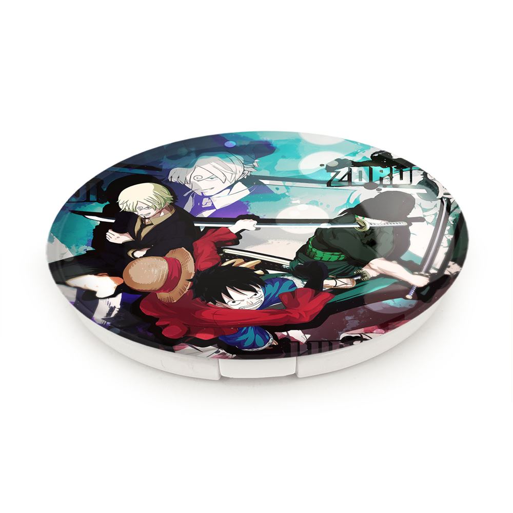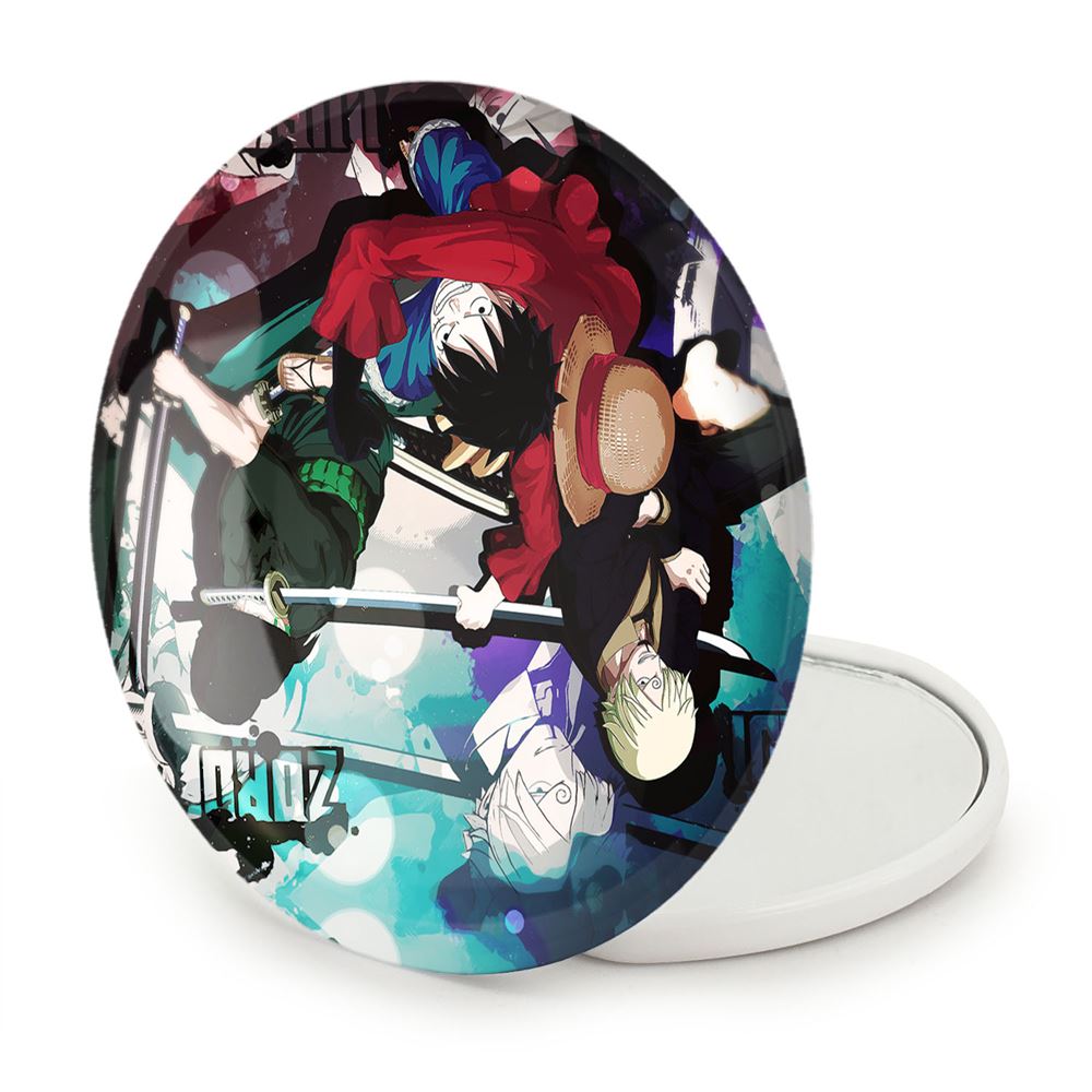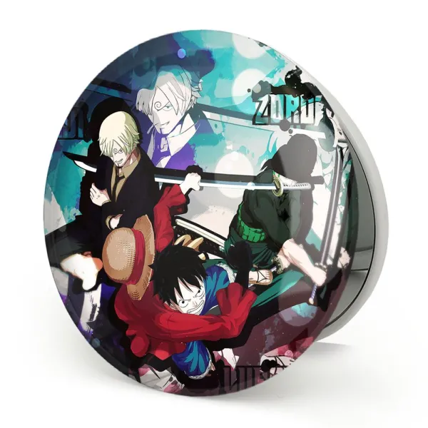 آینه های تاشو زورو و لوفی و سانجی انیمه وان پیس One Piece خندالو، از جنس پلاستیک فشرده ABS تولید شده و به رنگ سفید می باشد. یکی از آینه ها ابعاد واقعی را نشان داده و دیگری با قابلیت بزرگنمایی، جزئیات را بهتر نمایش می دهد. ابعاد هر یک از آینه ها، دایره ای به قطر 7.5 سانت می باشد که نه خیلی بزرگ و غیر قابل استفاده در کیف آرایشی ست و نه خیلی کوچک که تصویر خاصی در آن مشاهده نشود. آینه تاشو زورو و لوفی و سانجی انیمه وان پیس One Piece سایزی استاندارد و کارآمد دارد و در هر کیفی جا میگیرد. چاپ طرح بوسیله چاپگرهای دیجیتال شش رنگ با شفافیت و کیفیتی مثال زدنی بر روی یک وجه از بدنه ی آینه انجام گرفته و با روکش لمینت حرارتی پوشیده شده که در مقابل آسیب و خط و خش مقاوم بوده و کیفیت بالایی دارد. درب آینه بوسیله قفل بدنه ی آن، باز نمی ماند و کاملا بسته می شود و مناسب قرار گیری در کیف لوازم آرایش و کیف های کوچک دستی نیز هست. آینه های تاشو زورو و لوفی و سانجی انیمه وان پیس One Piece خندالو با تنوع طرحی بسیار بالا، سلیقه هر نوع مخاطبی را تامین میکند.