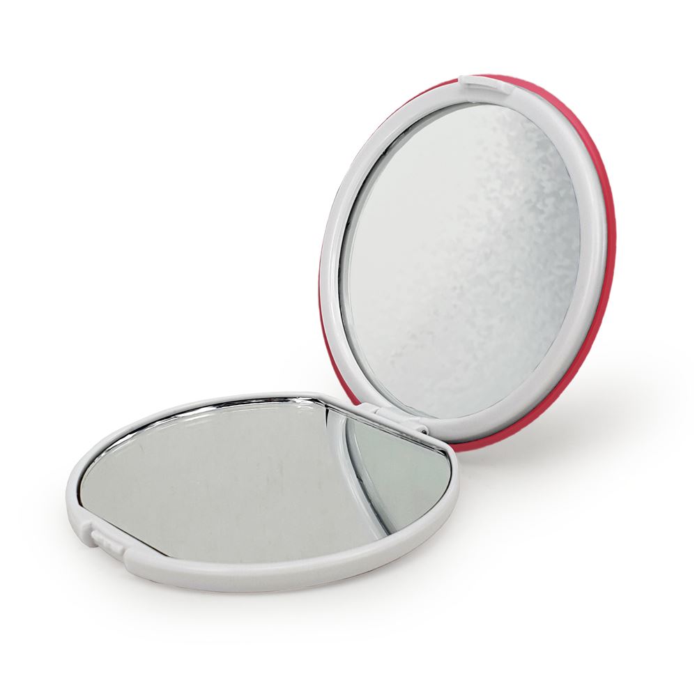 آینه های تاشو زیبای خفته خندالو، از جنس پلاستیک فشرده ABS تولید شده و به رنگ سفید می باشد. یکی از آینه ها ابعاد واقعی را نشان داده و دیگری با قابلیت بزرگنمایی، جزئیات را بهتر نمایش می دهد. ابعاد هر یک از آینه ها، دایره ای به قطر 7.5 سانت می باشد که نه خیلی بزرگ و غیر قابل استفاده در کیف آرایشی ست و نه خیلی کوچک که تصویر خاصی در آن مشاهده نشود. آینه تاشو زیبای خفته سایزی استاندارد و کارآمد دارد و در هر کیفی جا میگیرد. چاپ طرح بوسیله چاپگرهای دیجیتال شش رنگ با شفافیت و کیفیتی مثال زدنی بر روی یک وجه از بدنه ی آینه انجام گرفته و با روکش لمینت حرارتی پوشیده شده که در مقابل آسیب و خط و خش مقاوم بوده و کیفیت بالایی دارد. درب آینه بوسیله قفل بدنه ی آن، باز نمی ماند و کاملا بسته می شود و مناسب قرار گیری در کیف لوازم آرایش و کیف های کوچک دستی نیز هست. آینه های تاشو زیبای خفته خندالو با تنوع طرحی بسیار بالا، سلیقه هر نوع مخاطبی را تامین میکند.